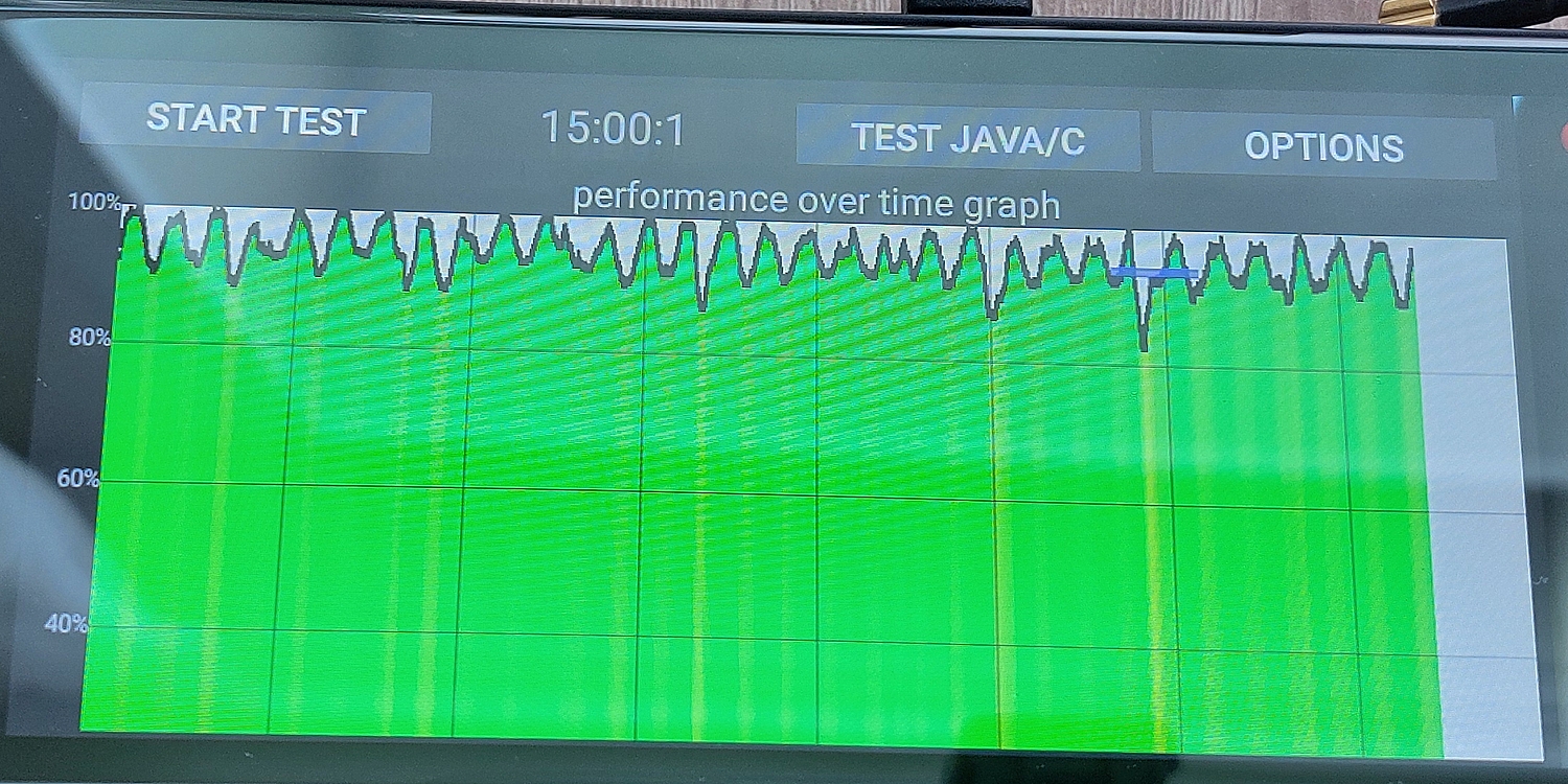 Проведем тест стойкости ЦП устройства к троттлингу и общий тест в ПО AnTuTu: