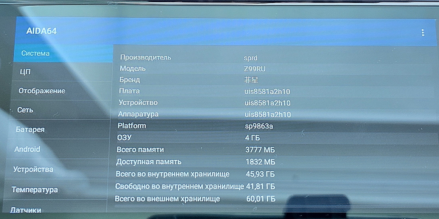 | Процессор | UIS8581A, восьмиядерный, 4xA55 (1.6GHz) + 4xA55 (1.2GHz) |