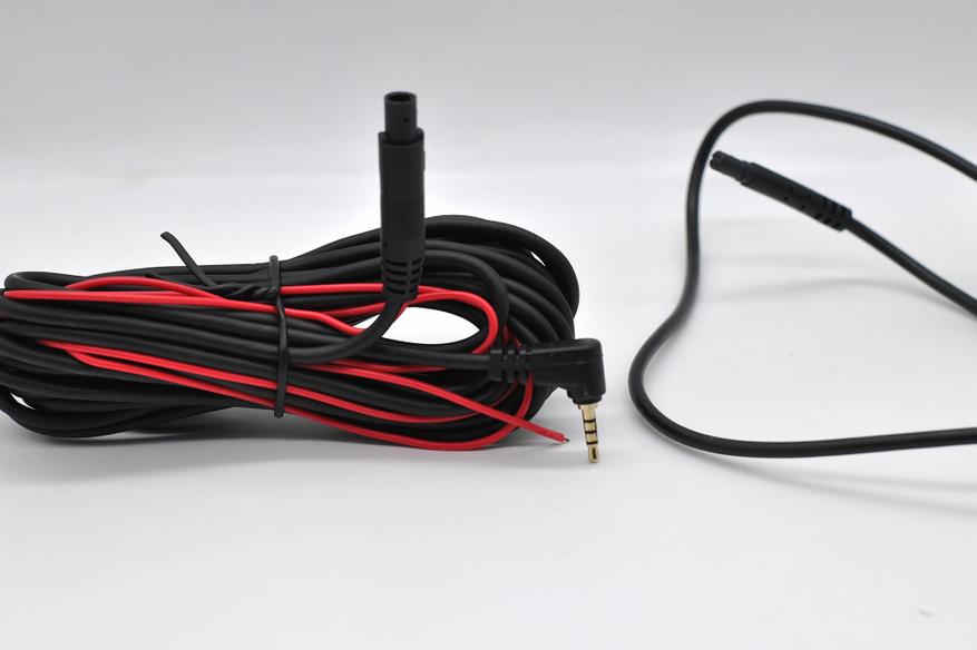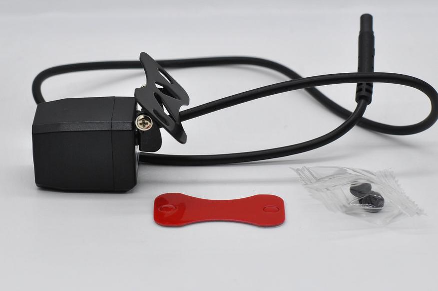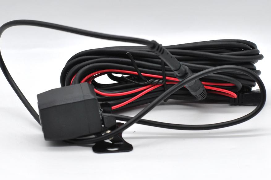 Видеорегистратор двухкамерный, задняя камера выносная, с защитой от воды (IP67), ее можно крепить как внутри салона (на двухсторонний скотч), так и снаружи автомобиля на поворотный по углу кронштейн. При подключении дополнительного конца кабеля (красная изоляция) к плюсу задних фонарей, будут активны парковочные линии (статические) на дисплее при парковке задним ходом. Вполне полезная опция для начинающих водителей.
