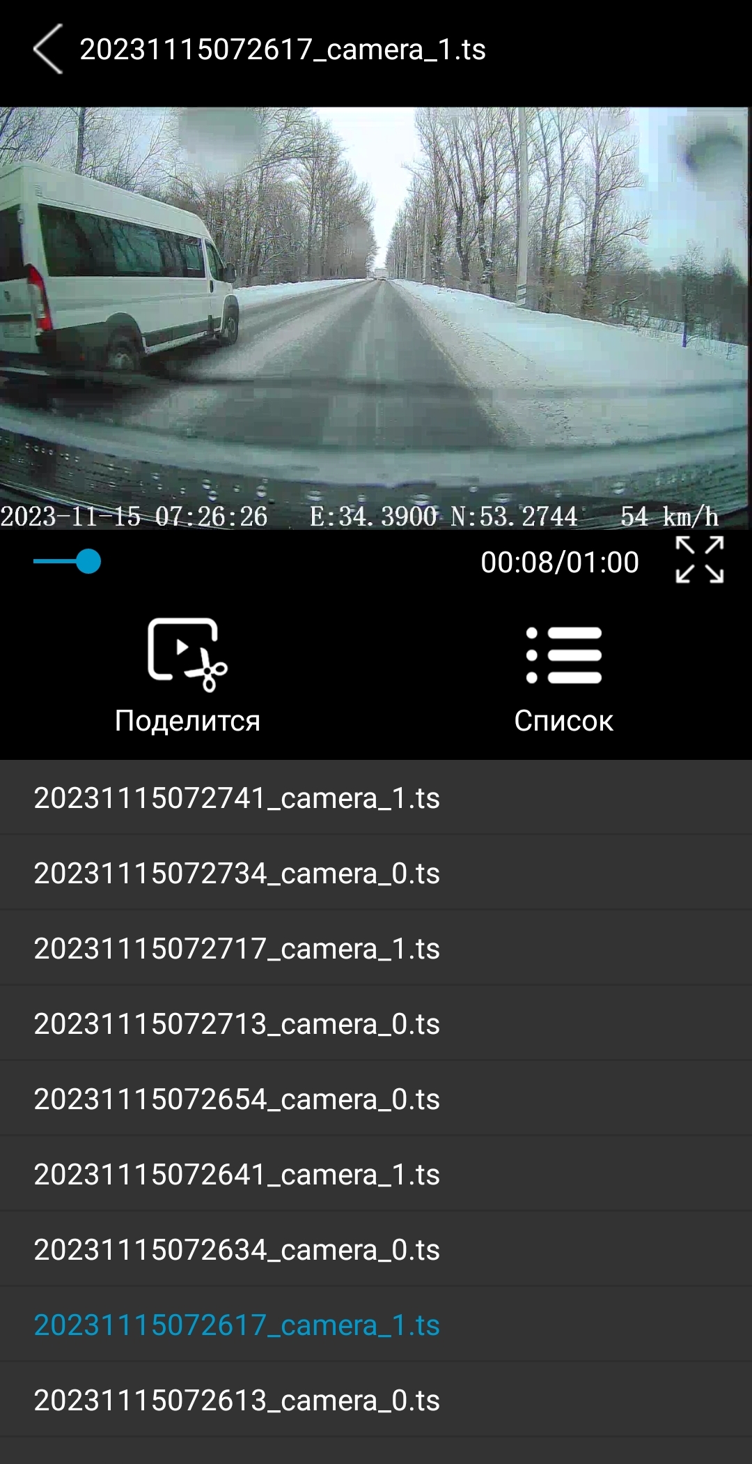 Тут используется приложение CarKeeper (есть для Android и iOS), соединение с зеркалом происходит через сканирование QR-кода. Можно удаленно управлять гаджетом, настраивать его и просматривать снятые ролики.