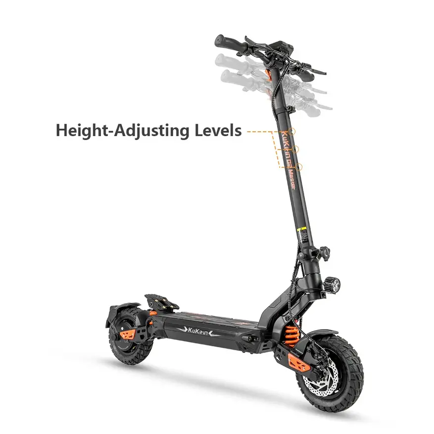 Электрический скутер KUKURIN G2 Master производителя из Китая оснащен аккумулятором 52 В 20,8 А*ч 1081 Вт*ч и двумя двигателями мощностью 1000 Вт. Максимальная скорость находится в пределах 37 миль в час (59,5 км/ч) и максимальная дальность поездки от полного заряда аккумулятора составляет 43 мили (69,1 км). Время зарядки аккумуляторной батареи занимает до 10 ч. Электродвигатель может работать в трех режимах скорости. Заявленная степень подъема на возвышения находится в пределах 30%.