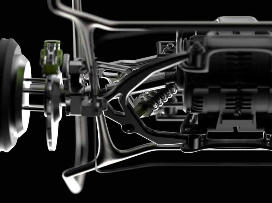 Техническое оснащение Shuv включает встроенную в деку аккумуляторную систему, что снижает центр тяжести для лучшего баланса. Производитель внедрил систему гравитационной подвески с рамой из стеклопластика и основанием шириной 23,9 см, которая эффективно амортизирует неровности дорожного покрытия.