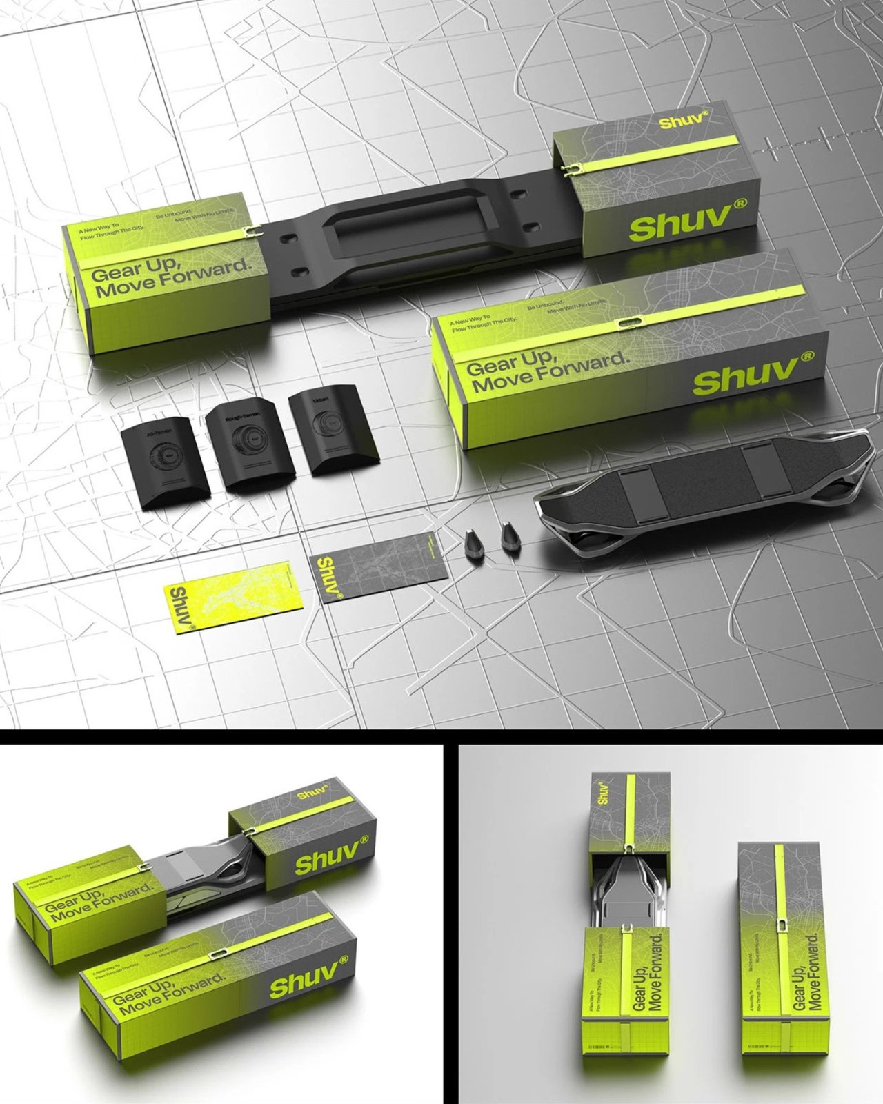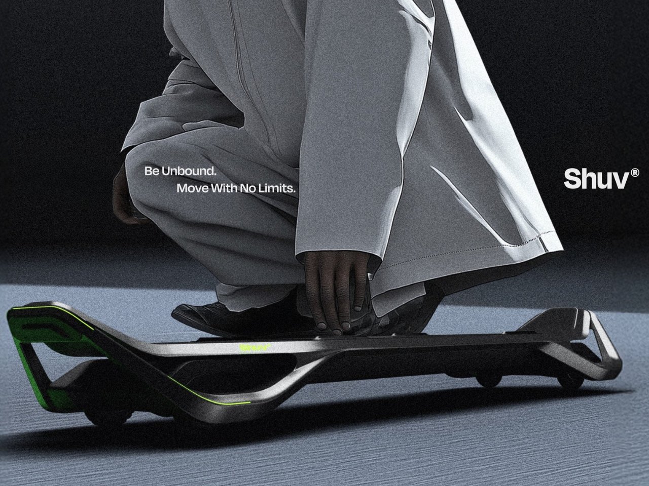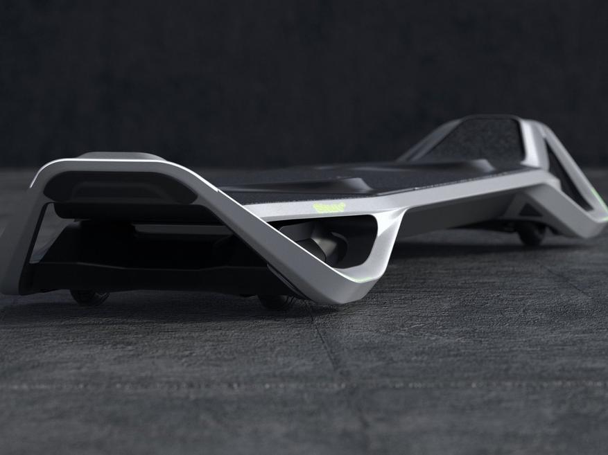 Дизайн Shuv сочетает узнаваемые черты традиционных скейтбордов с современными элементами. Неоново-зелёные акценты на корпусе повышают видимость транспортного средства в условиях городского движения, что является дополнительным фактором безопасности.