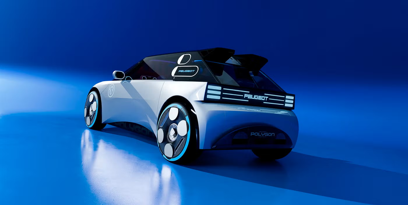 Внешность Polygon выполнена в резких углах и прямых поверхностях, что придаёт автомобилю «геймерский» вид. Peugeot подчёркивает, что концепт демонстрирует не просто дизайнерское упражнение, а технологическое и стилистическое направление бренда. Особое внимание уделено устойчивости: используются переработанные материалы и детали, напечатанные на 3D‑принтере, что делает автомобиль более экологичным и гибким для модификаций.