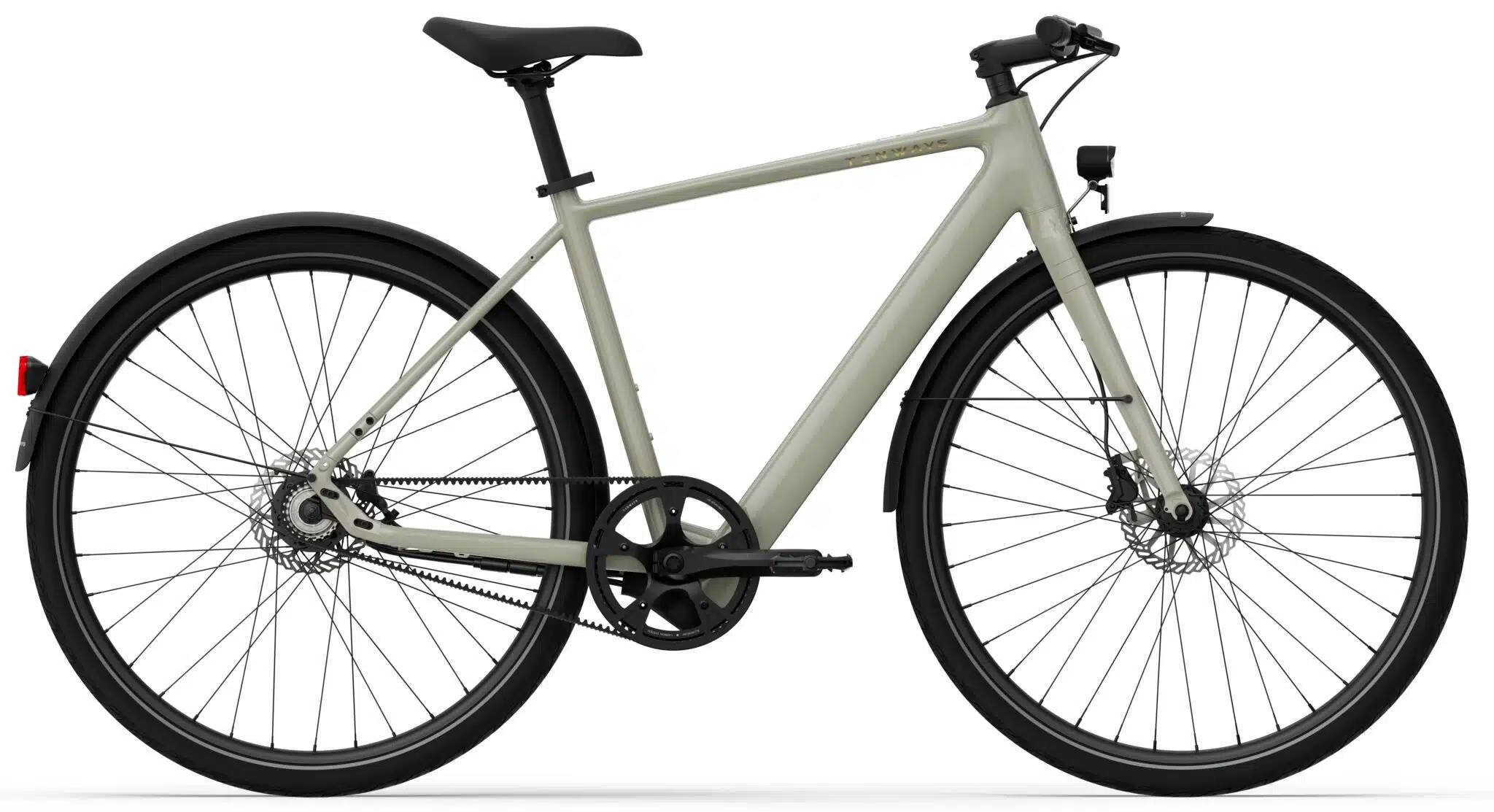С технической точки зрения, Tenways вновь делает ставку на проверенные компоненты. Например, карбоновый ремень Gates заменяет стандартную велосипедную цепь. Также имеется встроенный датчик крутящего момента, который автоматически регулирует уровень электрической помощи в зависимости от усилий велосипедиста. Три уровня помощи двигателя можно переключать прямо на руле.