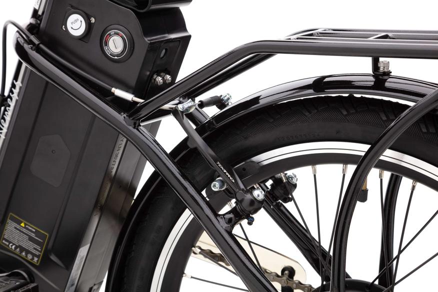 Складная конструкция транспортного средства позволяет хранить его в багажнике автомобиля. Дополнительное оборудование: багажник, крылья и освещение — входит в комплект. грузоподъемность — 120 кг. Цена начинается с 759 евро.