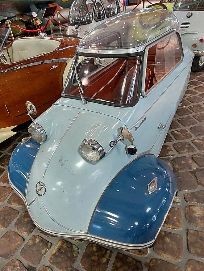 А началось всё с авиационных заводов, оставшихся без заказов после 1945 года. Messerschmitt — компания, ещё вчера выпускавшая смертоносные истребители — вдруг занялась производством странных трёхколёсных капсул с плексигласовыми фонарями. Инженеры просто не умели думать иначе! Messerschmitt KR200 с кабиной, открывающейся вверх, словно крышка истребителя, заставлял прохожих останавливаться и протирать глаза от изумления.