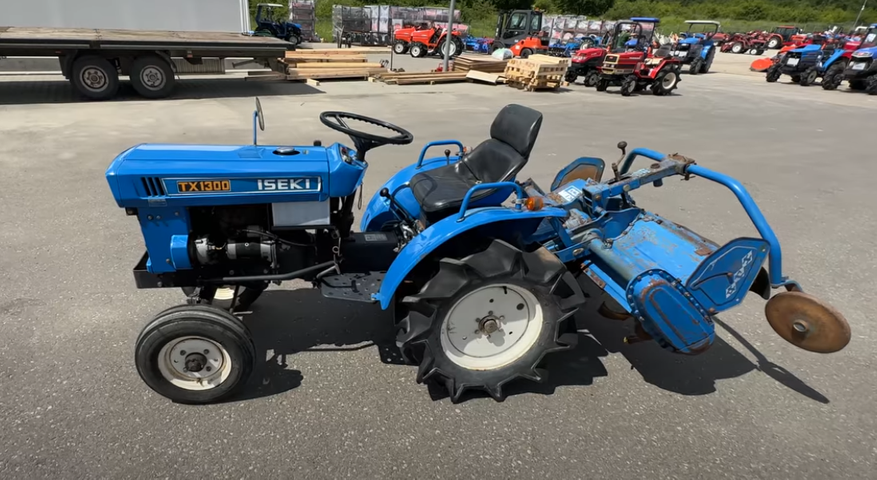Японский мини-трактор Iseki TX 1300 воплотил в себе все лучшие качества восточной инженерной мысли. При длине 1,8 метра и весе 350 кг он оснащался экономичным дизельным двигателем мощностью 10 лошадиных сил. Низкий центр тяжести и продуманная конструкция делали его идеальным для работы на рисовых чеках.