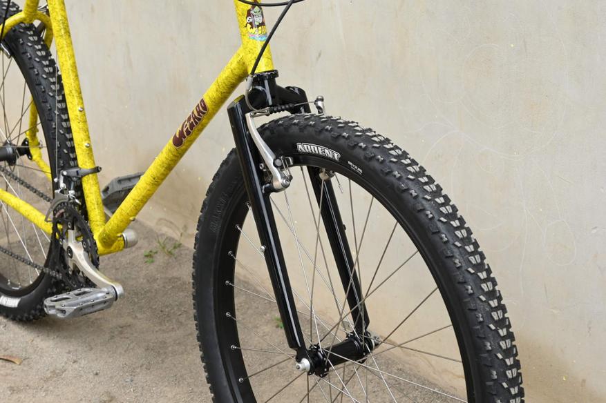 Внутри треугольника расположены два крепления для бутылок, а еще одно находится под нижней трубой. На задних перьях есть штатные места для установки багажника и полноразмерных крыльев. Стальная вилка предлагает крепление для переднего багажника.