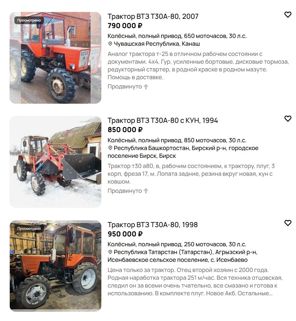 Даже сейчас эти тракторы в рабочем состоянии встречаются на сайте объявлений: