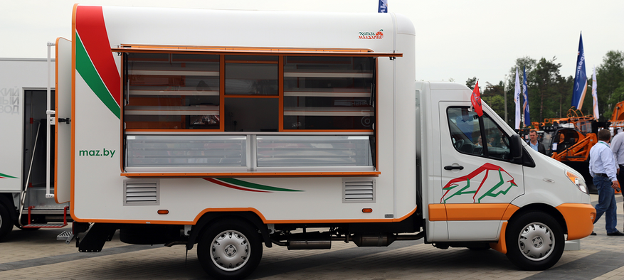 «Мандарин» на колёсах: МАЗ показал новую автолавку для торговли