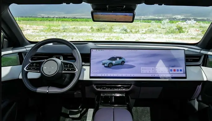 Салон кроссовера оборудован центральным сенсорным экраном диагональю 26,45 дюйма с разрешением 5K и проекционным дисплеем размером 50 дюймов, проецирующим информацию на ветровое стекло. Автомобиль поддерживает функции автономного управления второго уровня благодаря комплексу камер и радаров.