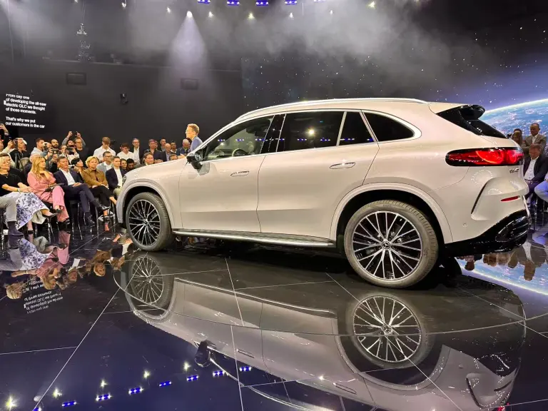 Mercedes-Benz 7 сентября 2025 года представил полностью электрический внедорожник GLC на автосалоне в Мюнхене. Новая модель отличается инновационным дизайном, включающим подсвечиваемую решетку радиатора с 942 индивидуально управляемыми светодиодными точками, создающими динамические световые эффекты.