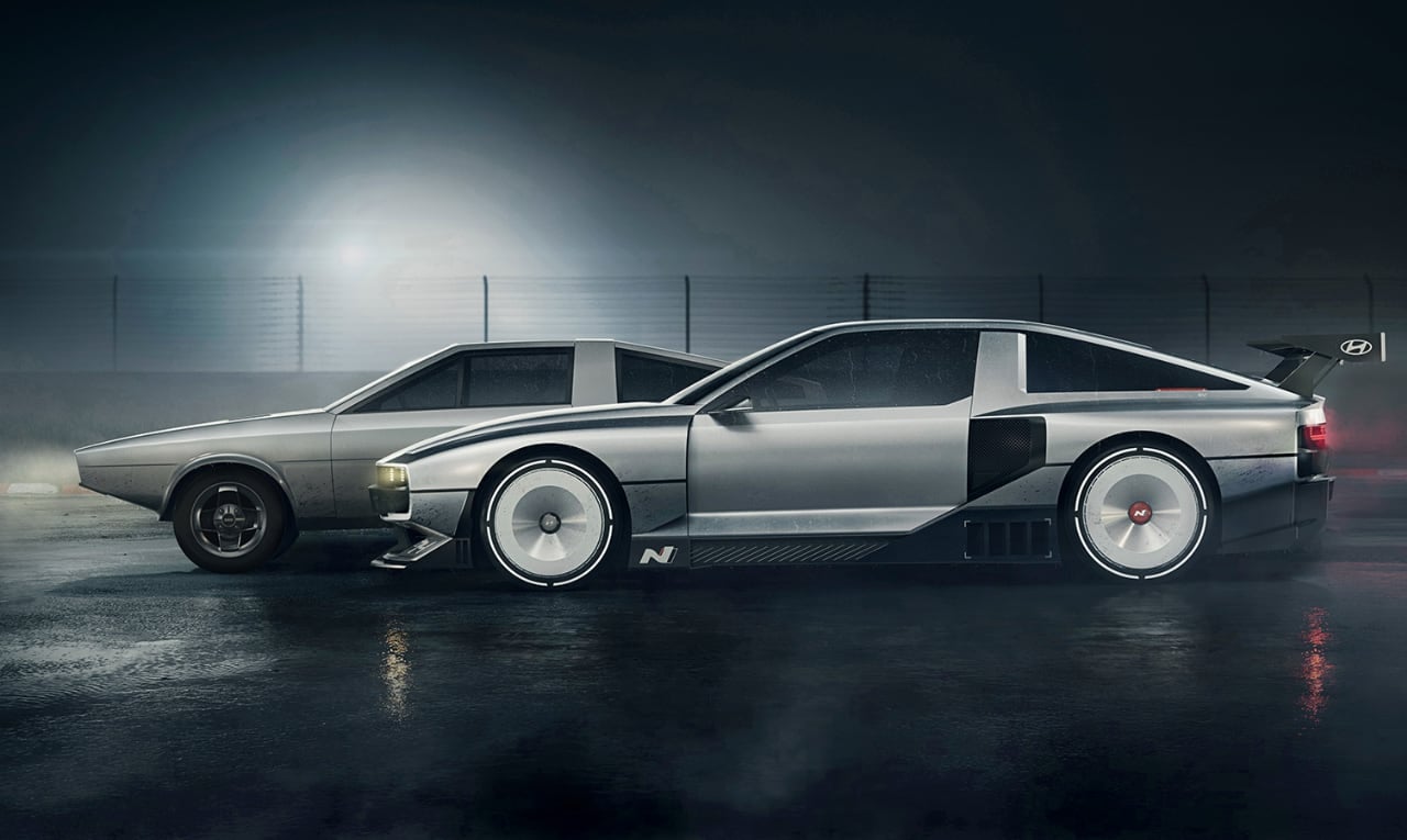 Дизайн N Vision 74 вдохновлен концептом Pony Coupe 1974 года от Джорджетто Джуджаро и включает характерные элементы: клиновидный профиль, двери типа «крыло чайки» и пиксельную светодиодную оптику.