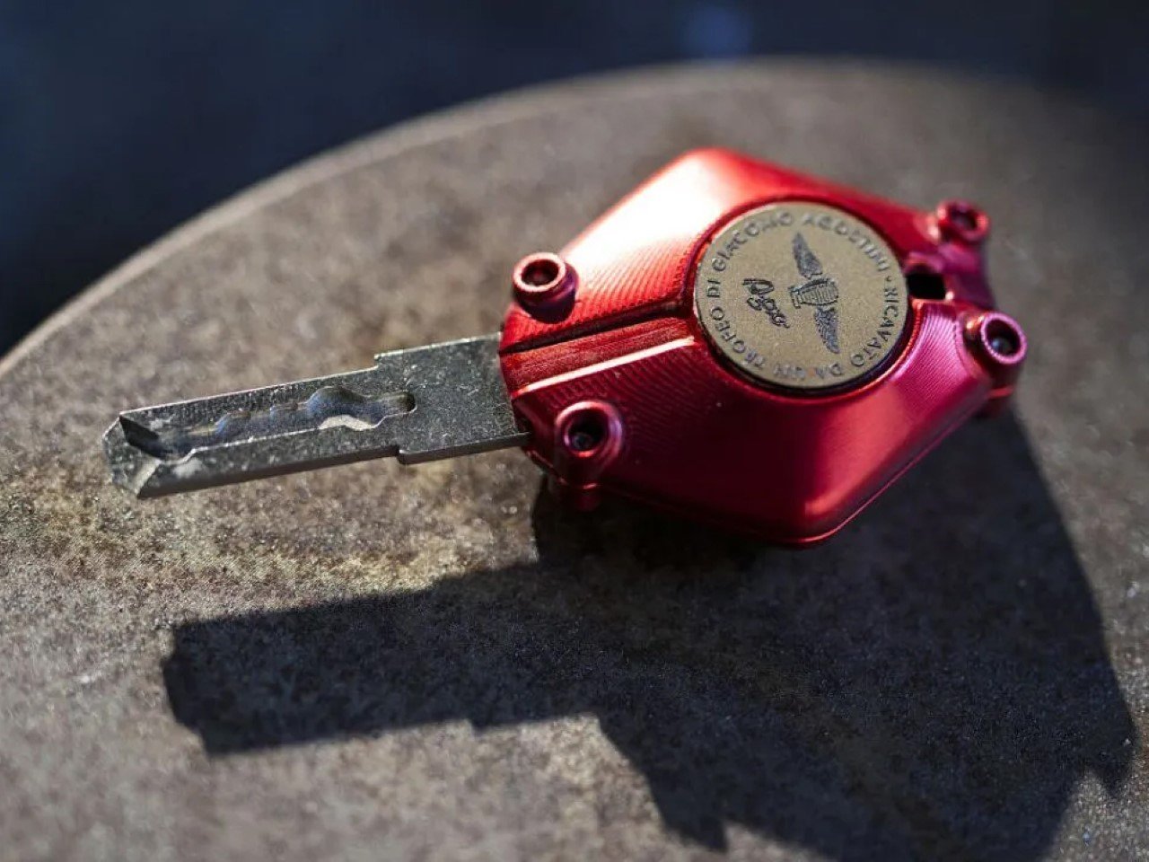 Особое внимание уделено деталям — ключ зажигания представляет собой произведение искусства в корпусе из красного анодированного алюминия, содержащий латунную монету, изготовленную из материала одного из оригинальных гоночных трофеев Агостини.