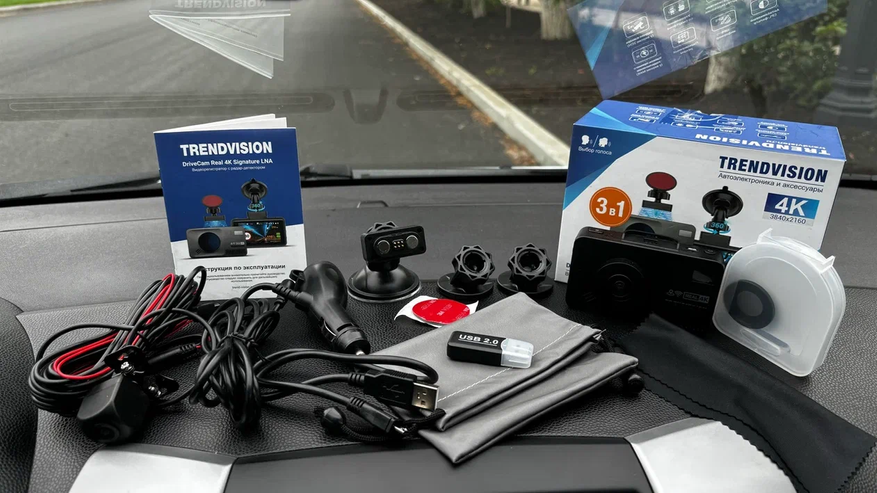 - Вторая камера и расходники. Устройство может поддерживать двухканальную запись, однако это не гарантирует наличие камеры в комплекте. Расходники — 3М-скотч или шурупы для крепления.