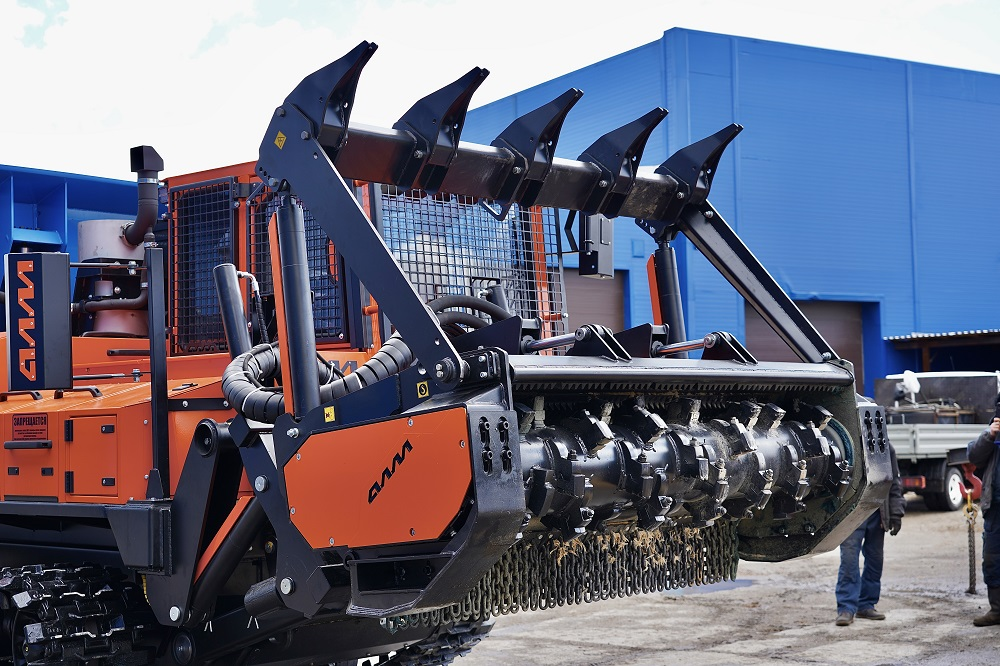На заводе по производству гусеничной и колесной спецтехники представили новую версию базового гусеничного трактора МТЧ-4 с новым навесным оборудованием. Гусеничную машину изготовили по индивидуальным требованиям заказчика, и она объединяет в себе функции самосвала с высокой проходимостью и мульчерной установки для работы в сложных условиях природного ландшафта.