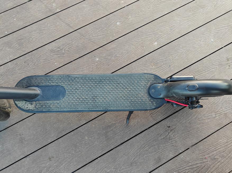 Сверху материал деки — резиновое покрытие с выступами, держит чуть слабее, чем покрытые абразивным материалом а-ля шкурка. Заднее крыло крепится на 3 винта, Крыло массивное, однозначно крепче варианта первых Сяоми, которые массово отрывались даже при взгляде на них.