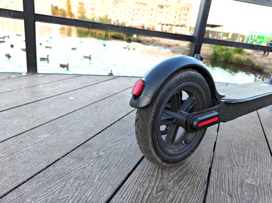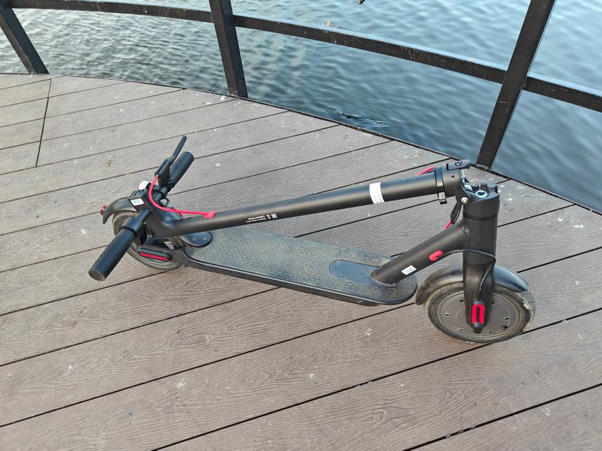 В итоге самокат гарантированно выделяется на фоне одноклассников при такой же цене. Производитель подумал о комфорте при езде, самокат не бренчит и гасит многие небольшие неровности дороги благодаря накачиваемым колесам. В его цену это отличный вариант, когда нужна рабочая лошадка, без гоночных амбиций. Не боится дождя, крепкий, имеет нормальное разделение режимов. Есть фара и стоп-сигнал. В целом — отличный городской вариант, который соответствует нормам ПДД и законам о транспортных средствах.