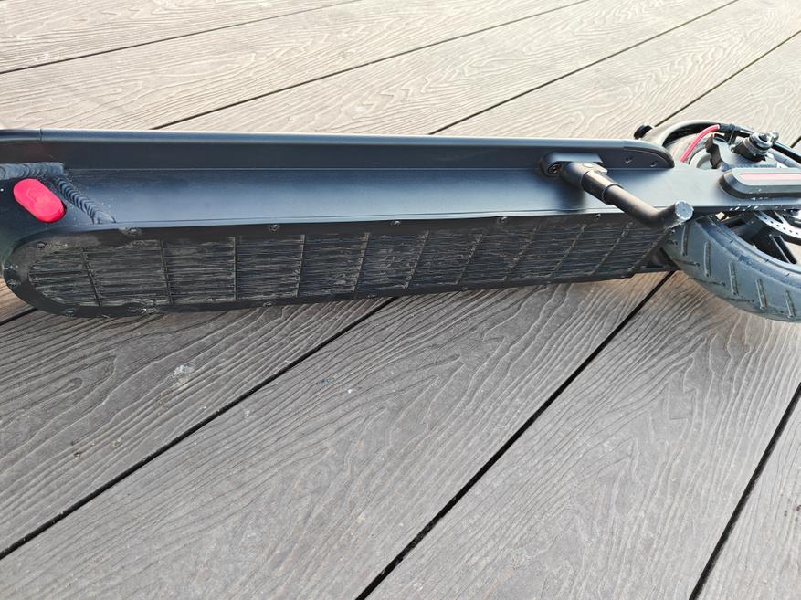 Основание крепится на винтах, в дальнейшем можно будет поменять аккумулятор, но как сказал классик: «Не надо лезть туда, куда не надо лезть». За 1000 км аккумулятор не приказал долго жить и не показал признаков деградации, поэтому разбирать заводскую водозащиту я пока не планировал. Что важно отметить, внутри все собрано качественно с использованием уплотнителей, я это предполагаю, потому что самокат не бренчит совсем, в отличие от многих одноклассников.