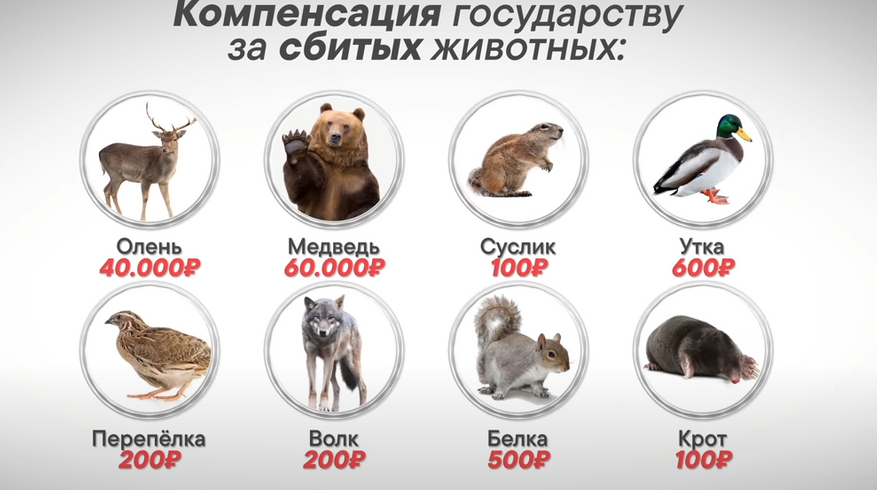 Сбитые деревья, кусты, а также животные считаются государственной собственностью, и за нанесение вреда этой собственности можно получить штраф. А если не оформить всё как положено, как описано выше, то и вовсе лишиться прав. Из самых ярких недавних прецедентов — это водитель из Свердловской области, который несколько раз проехался по голубям. Теперь ему грозит лишение прав и штраф за оставление места ДТП, а также компенсация государству в размере 600 рублей за каждого сбитого голубя. Компенсация государству положена и за других сбитых животных. К счастью, эту компенсацию можно покрыть вашей страховкой.