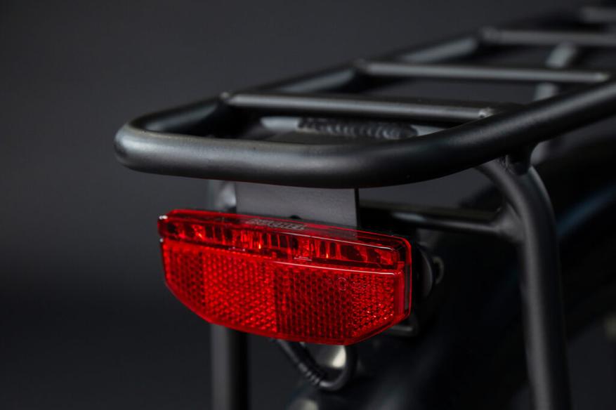 Кроме того, городской электровелосипед полностью оборудован в соответствии с германскими нормами для осветительных приборов StVZO для поездок в темное время суток.