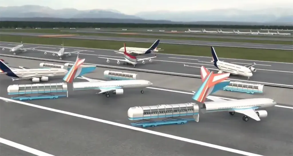 Согласно представленным данным, система Jetspeed позволит сократить время посадки до менее чем 20 минут на большинство рейсов. Процесс работает следующим образом: пассажиры размещаются в автономных мобильных капсулах непосредственно у выхода на посадку, после чего капсулы автоматически доставляются в фюзеляж самолета через открытую заднюю часть.