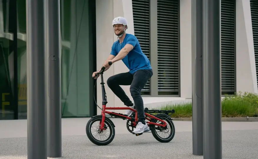 Отличие складного устройства заключается в его конструкции: двигатель, аккумулятор и рукоятка находятся на одном шарнире, что позволяет поддерживать постоянное натяжение цепи или ремня при складывании. Для компактного складывания велосипеда достаточно одного подъема — без инструментов и последующей регулировки.