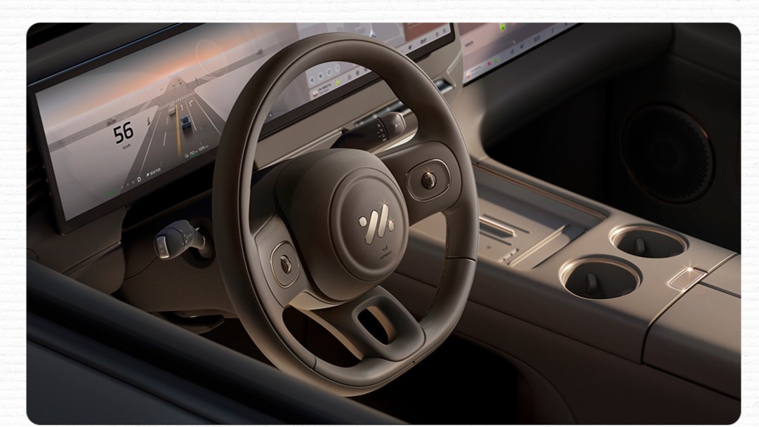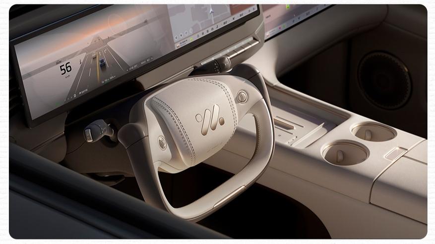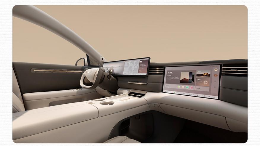 Интерьер автомобиля включает 5K плавающий экран для водителя, где левая часть служит приборной панелью, а правая — сенсорным дисплеем. Для переднего пассажира предусмотрен экран с разрешением 3K. Доступен опциональный руль в форме yoke, а переключатель передач выполнен в виде компактной ручки на рулевой колонке. В центре консоли размещены площадка для беспроводной зарядки телефона, подстаканники и вместительный отсек. Физические кнопки управления дополнены кнопками на дверных картах вместо традиционных ручек, а также присутствует ambient-подсветка и электрическая регулировка сидений. Во втором ряду установлен холодильник, способный охлаждать или подогревать продукты и напитки. Автомобиль оснащен панорамной крышей и акустической системой. Коэффициент использования пространства интерьера составляет 90%.