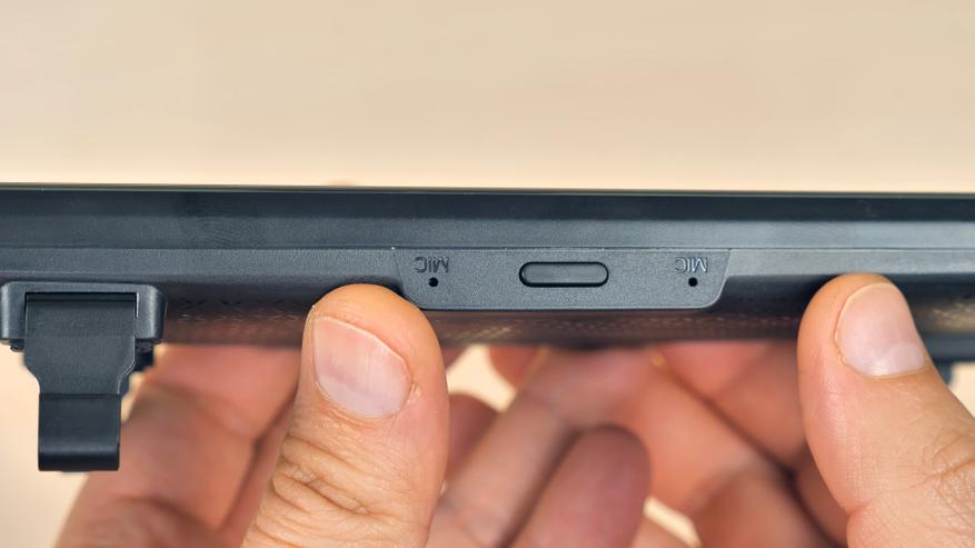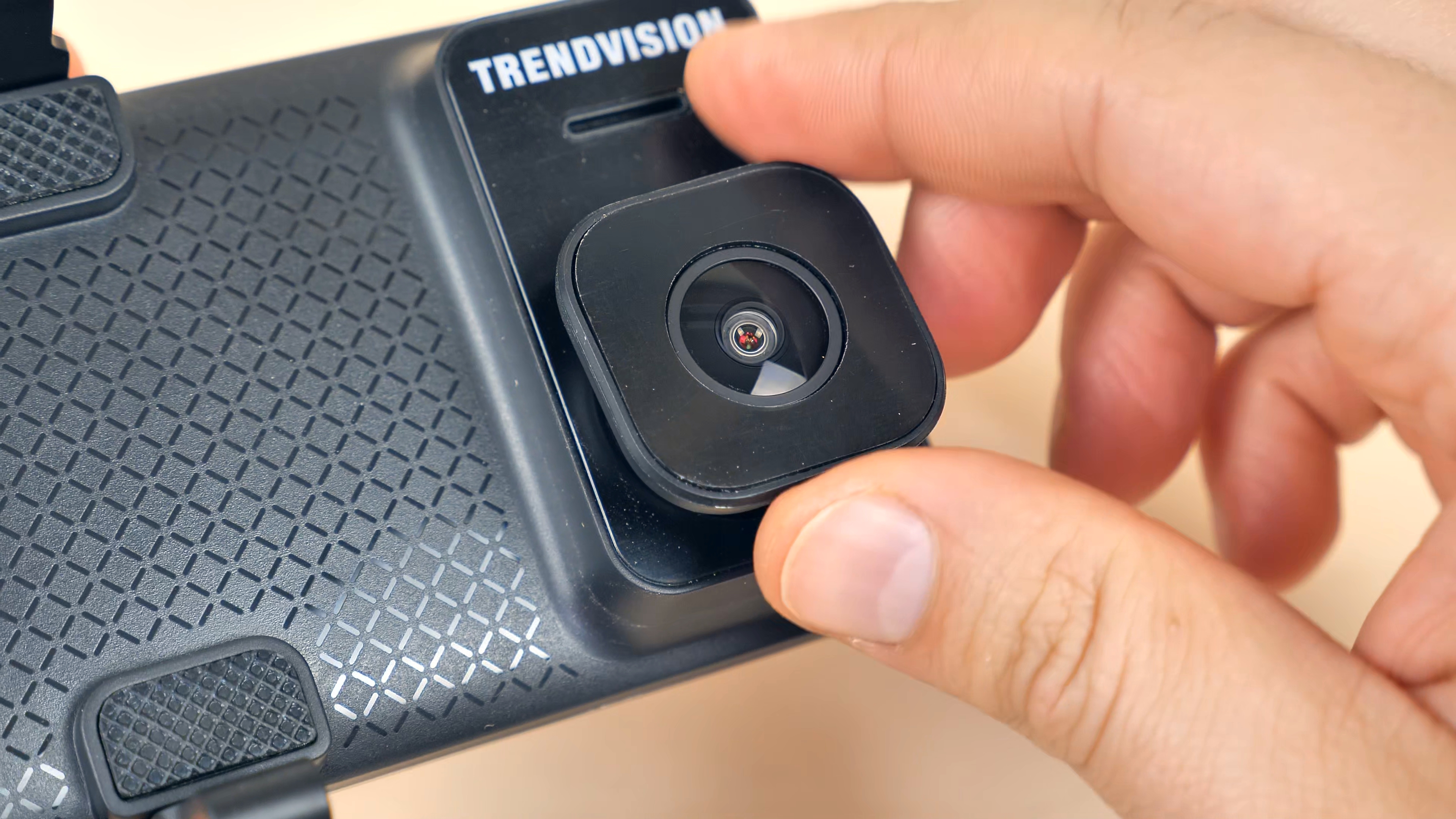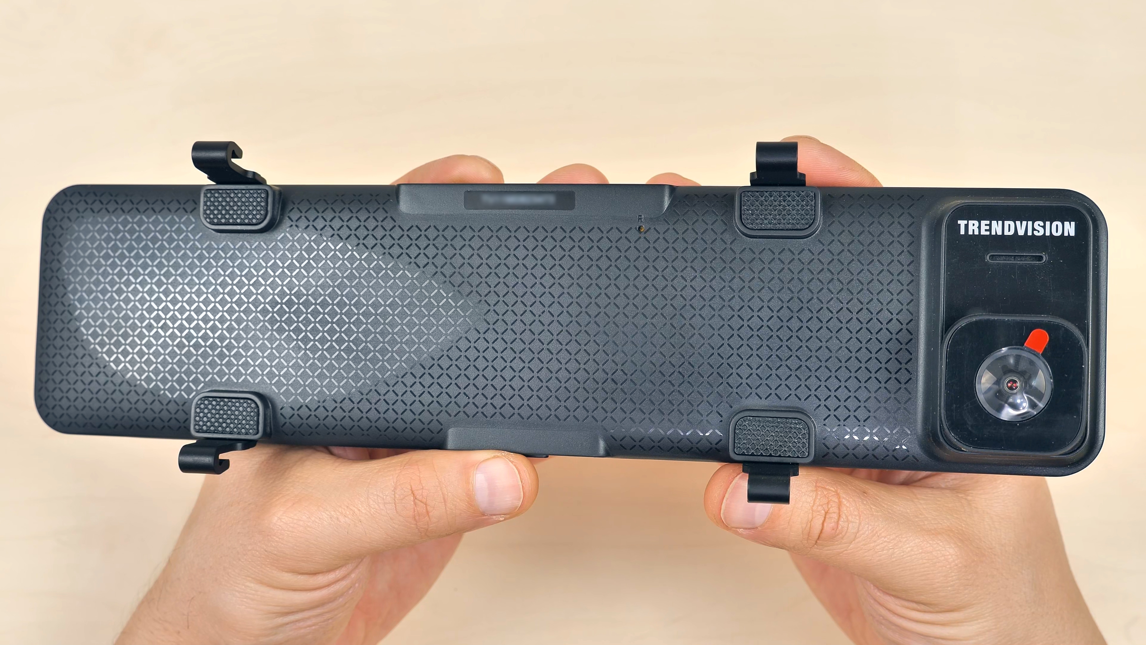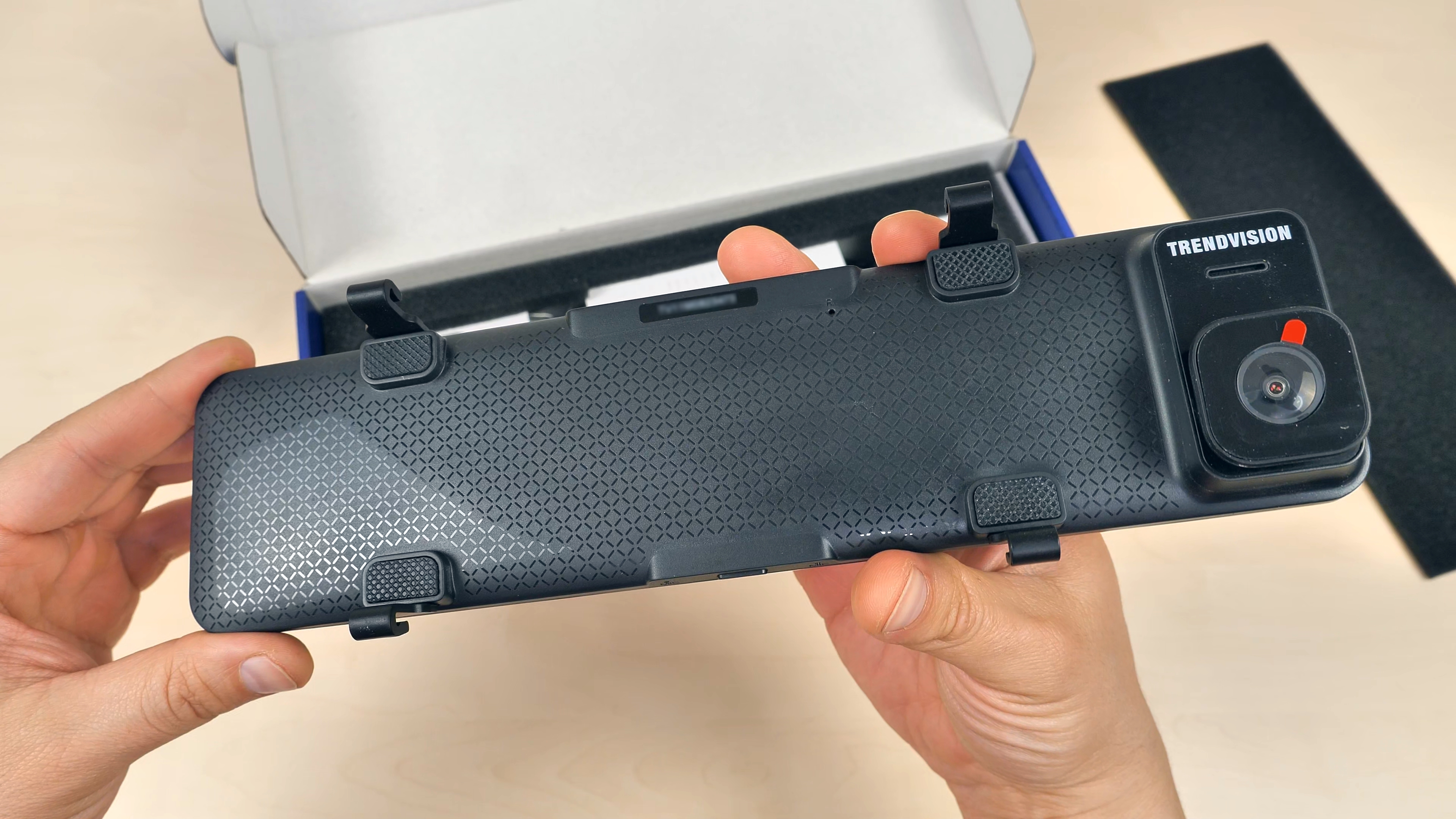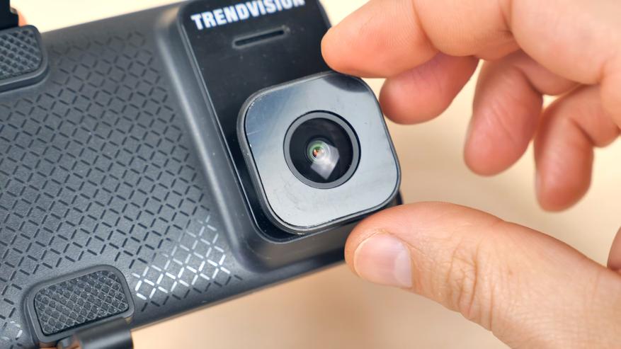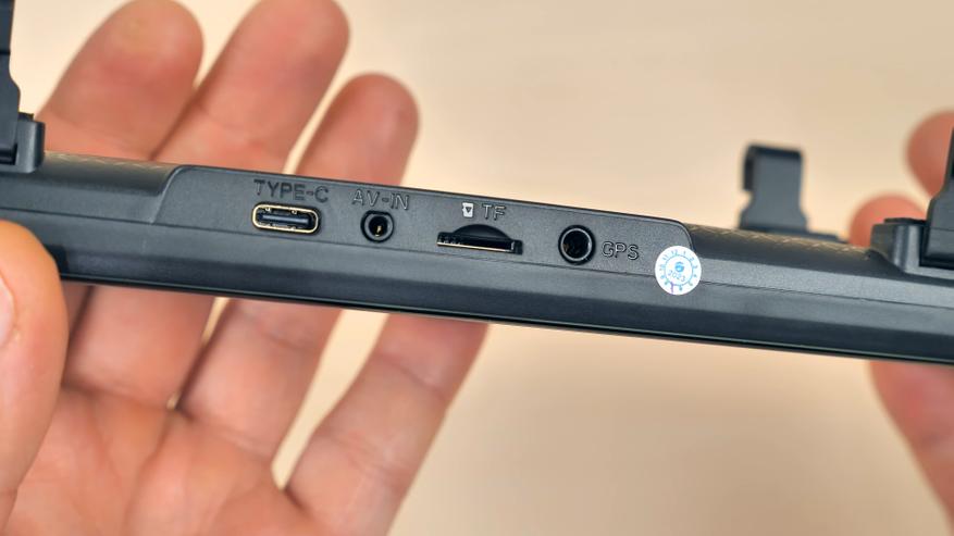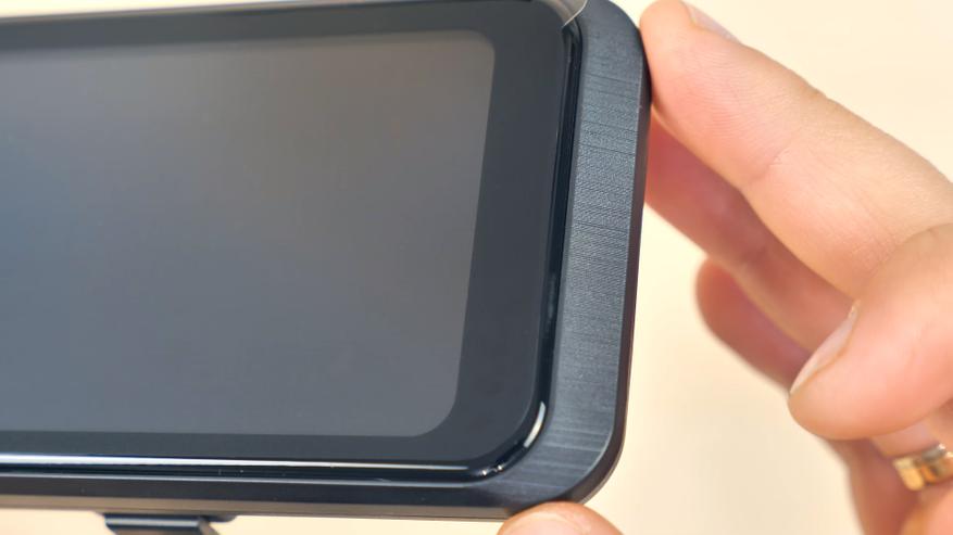 На нижней части корпуса расположились микрофоны и одна единственная механическая кнопка включения/выключения устройства, а также для блокировки экрана. На верхней части корпуса расположились Type-C порт питания, он же используется для подключения к компьютеру; разъём для подключения задней внешней камеры; слот для MicroSD карты памяти объёмом до 128Гб и разъём для подключения внешней GPS антенны. На тыльной стороне устройства расположились кнопка сброса параметров и ушки для крепления этого зеркала на штатное зеркало автомобиля.