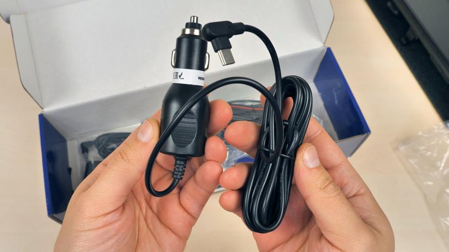 Комплект у зеркала довольно богатый: есть визитка с указанием координат технической поддержки, поскольку бренд отечественный, то поддержка на русском языке; две резиновые стяжки для крепления зеркала на штатное зеркало автомобиля; 15W источник питания в прикуриватель, способный выдавать до 3A тока при 5V, а ещё он способен работать как в 12V бортовой сети автомобиля, так и в 24V, то есть способен работать как в легковых автомобилях, так и в грузовых.