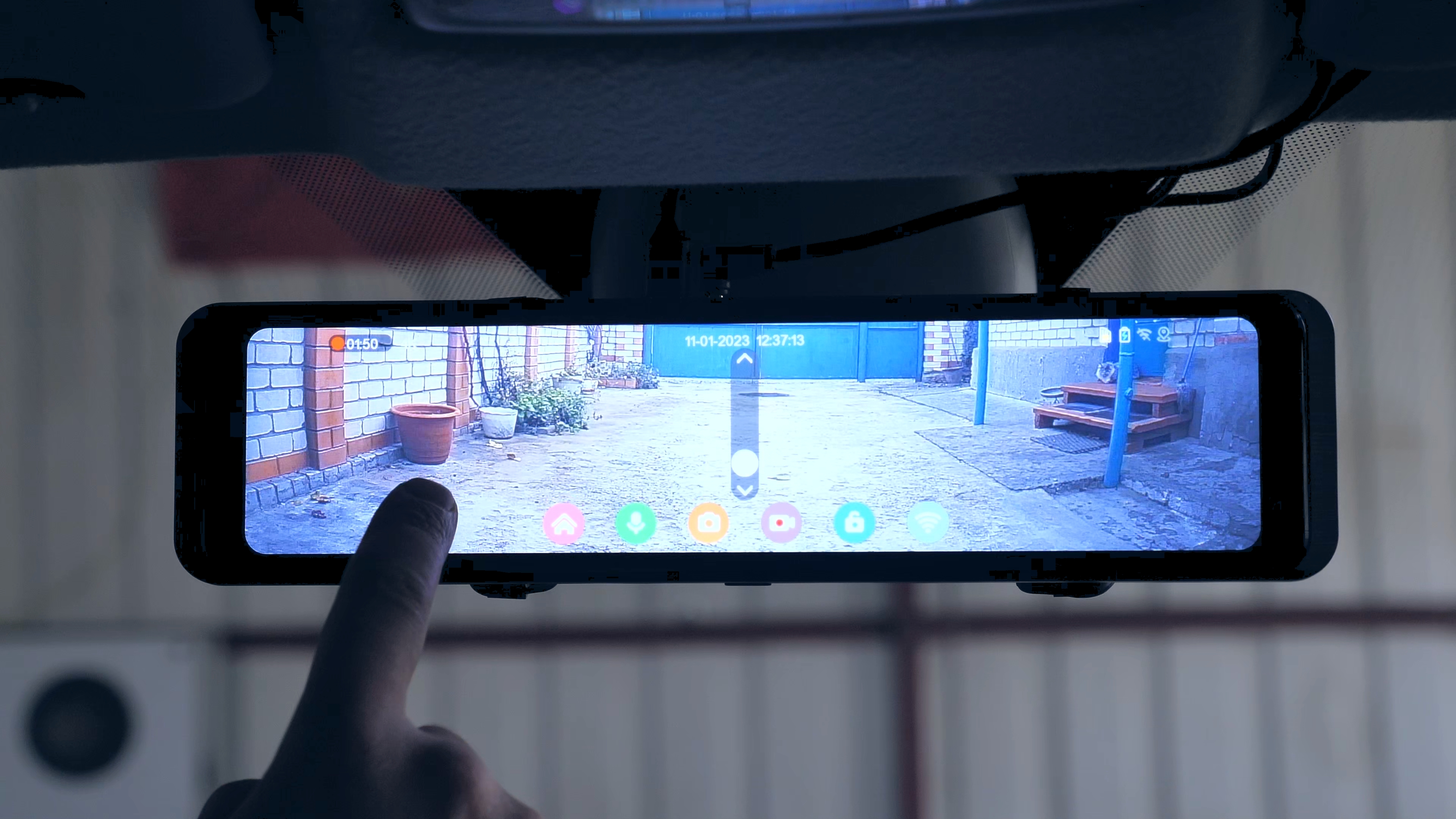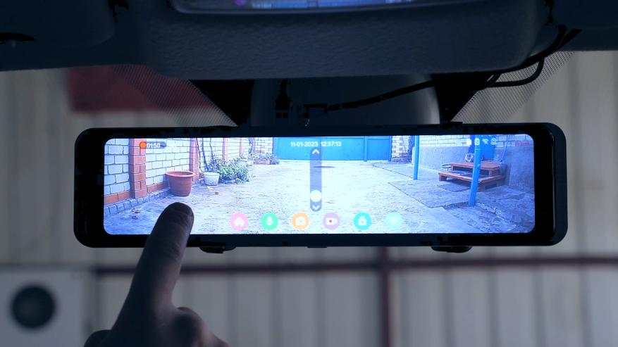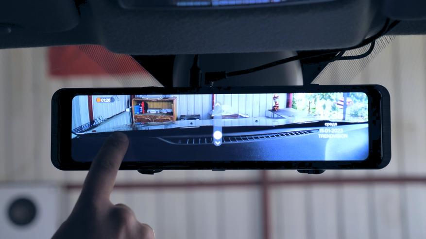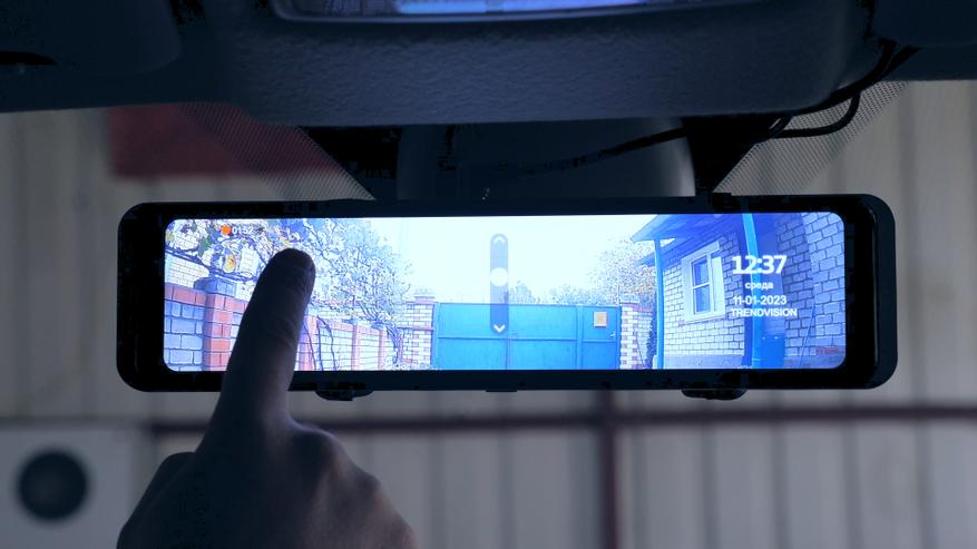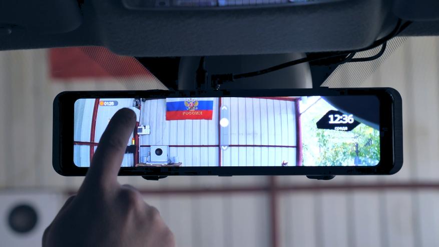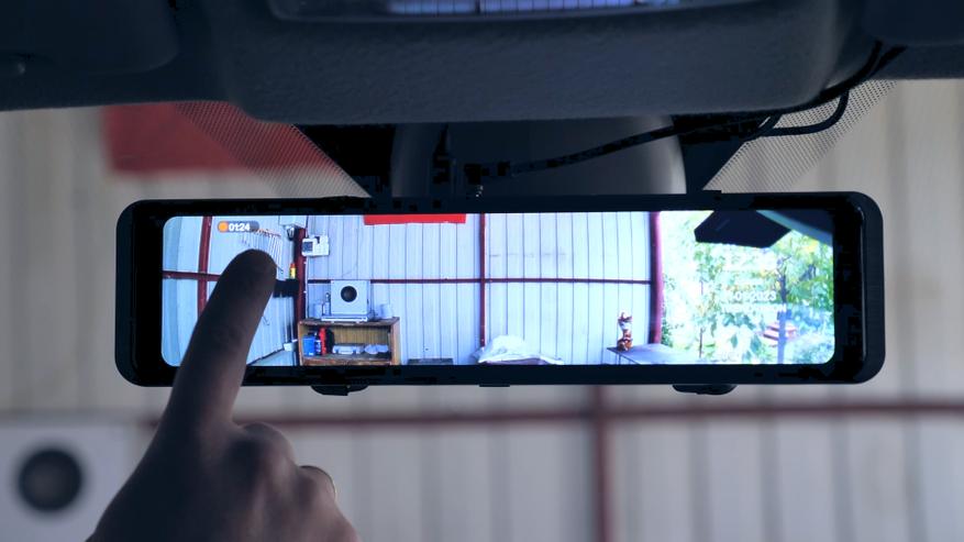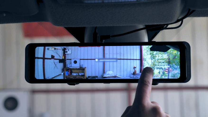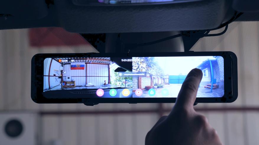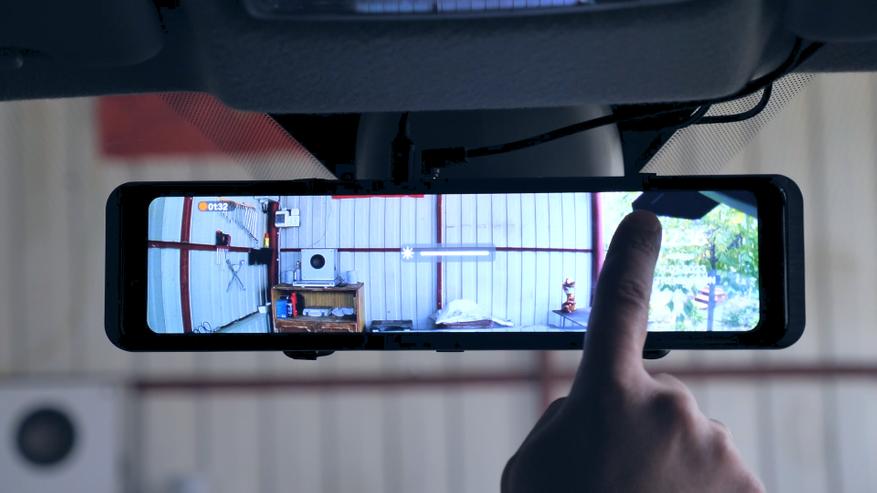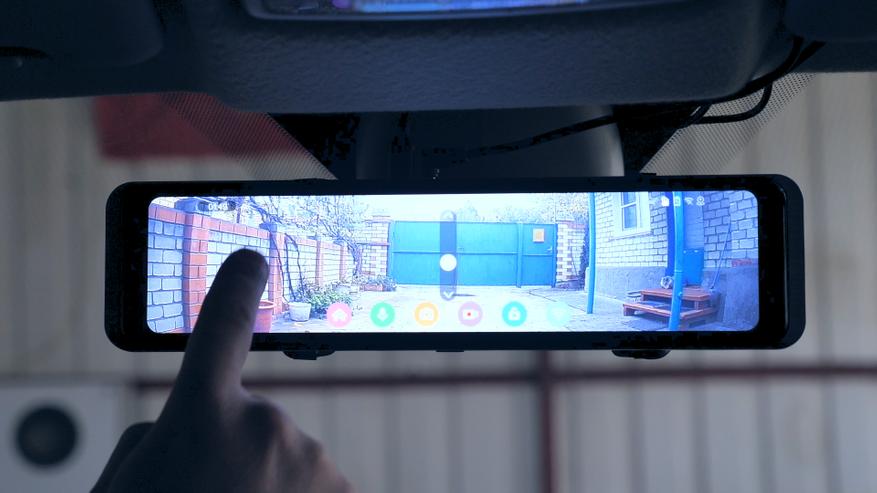 Зеркало поддерживает управление жестами, что несомненно будет полезным и удобным в дороге — свайпом по экрану по горизонтали можно переключаться между потоками с камер или же вывести на экран их оба.