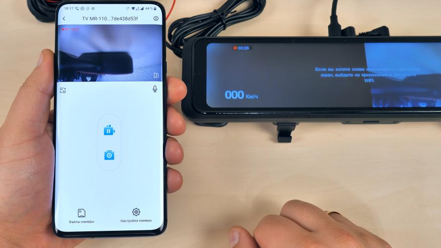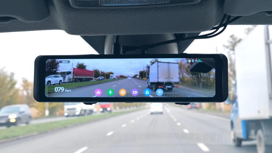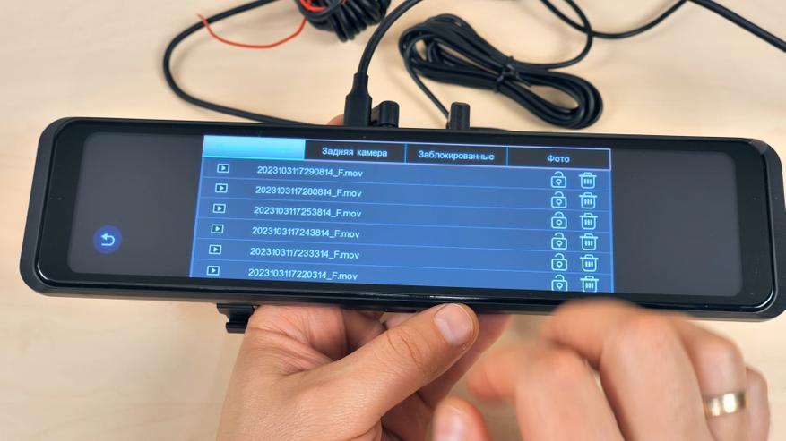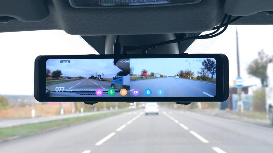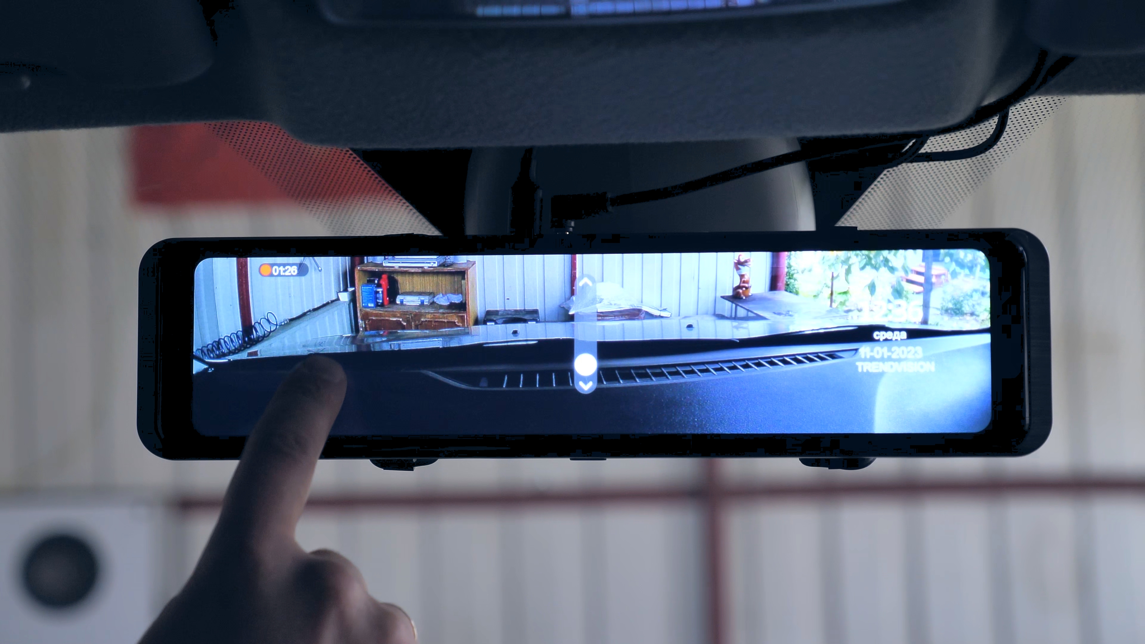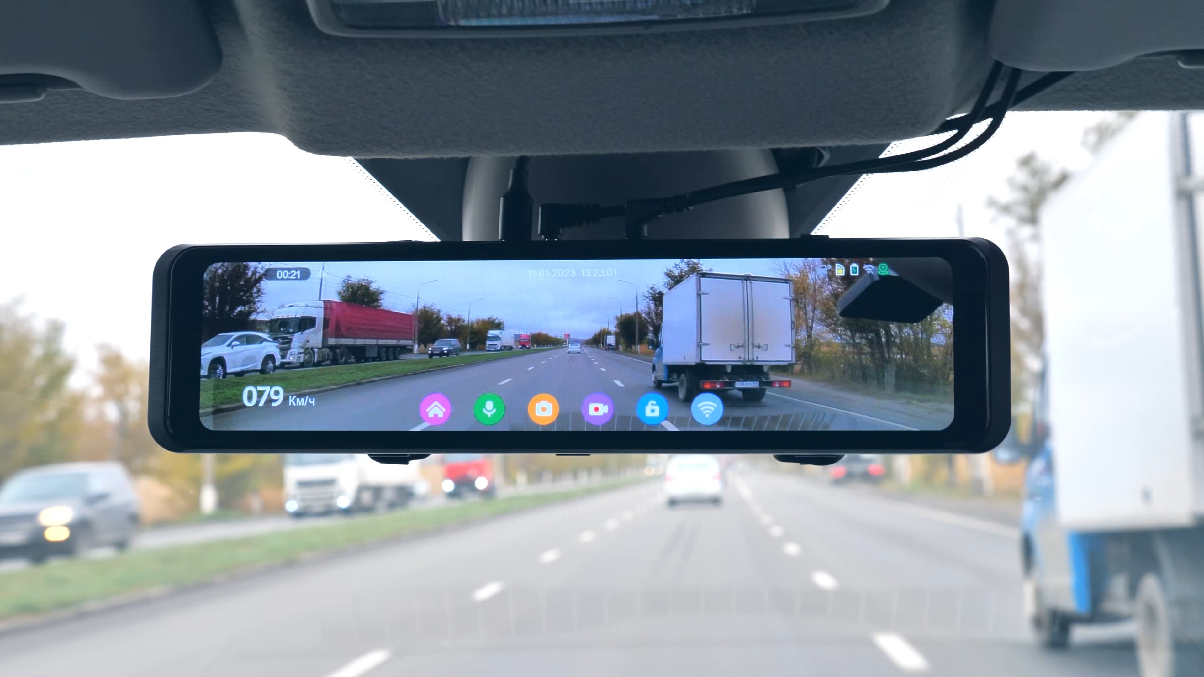 Зеркало поддерживает управление жестами, что несомненно будет полезным и удобным в дороге — свайпом по экрану по горизонтали можно переключаться между потоками с камер или же вывести на экран их оба.