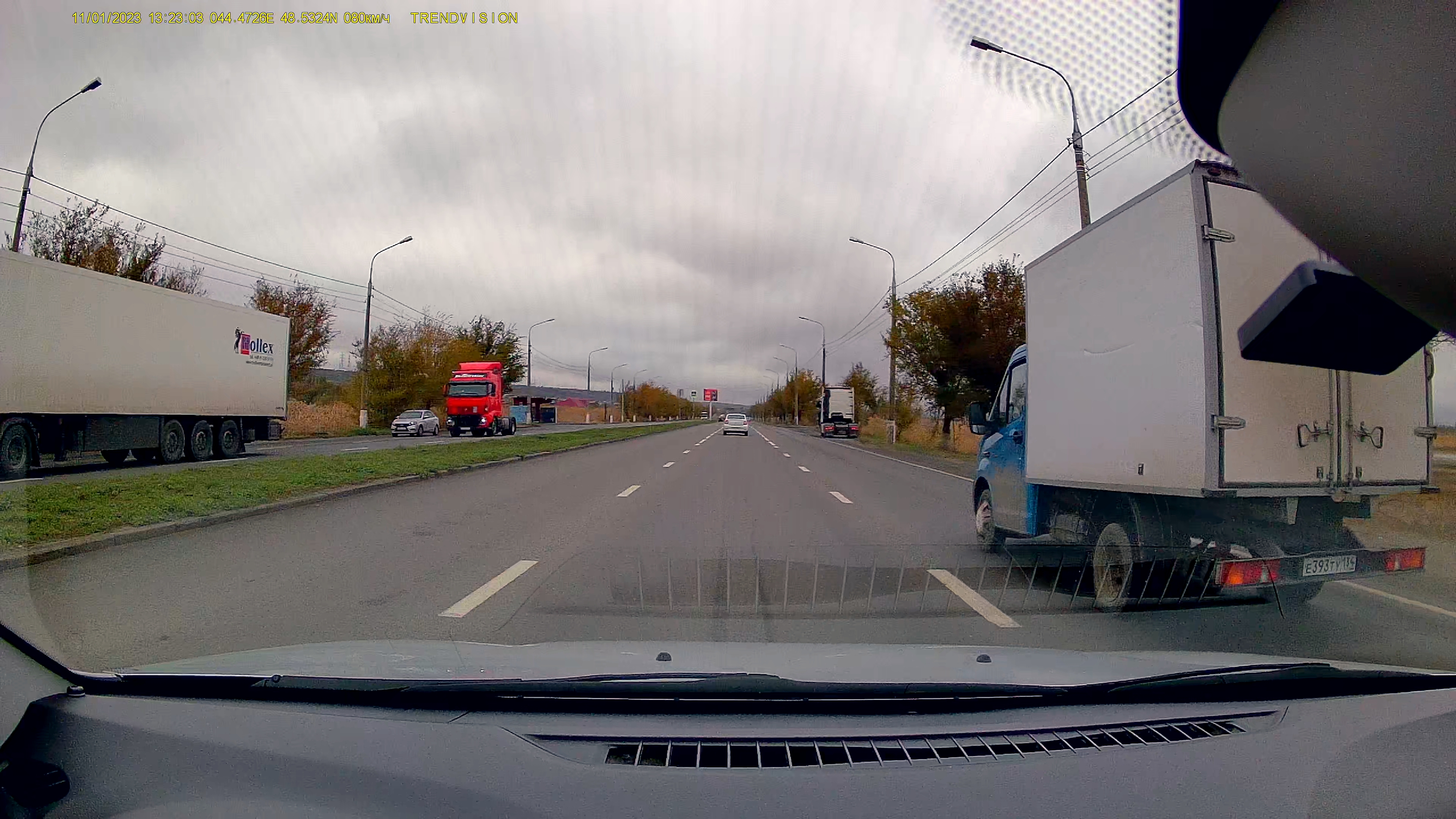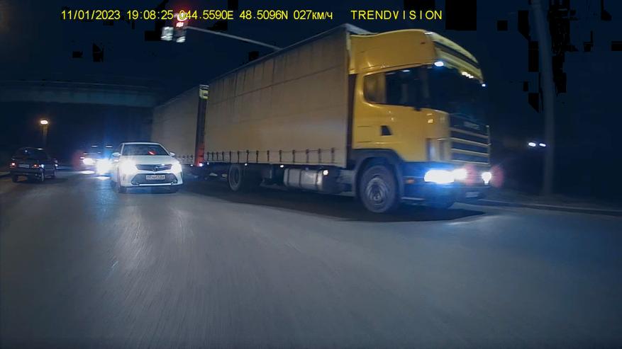 Главное преимущество задней камеры — это угол её обзора, заявляется 140 градусов. Когда грузовик подъезжает вплотную к автомобилю, кажется, что камера кроме кабины грузовика видеть ничего не будет, но по факту вплотную подъехавший грузовик для неё не проблема, она всё равно видит и обочину и соседние ряды, угол обзора тут действительно большой.