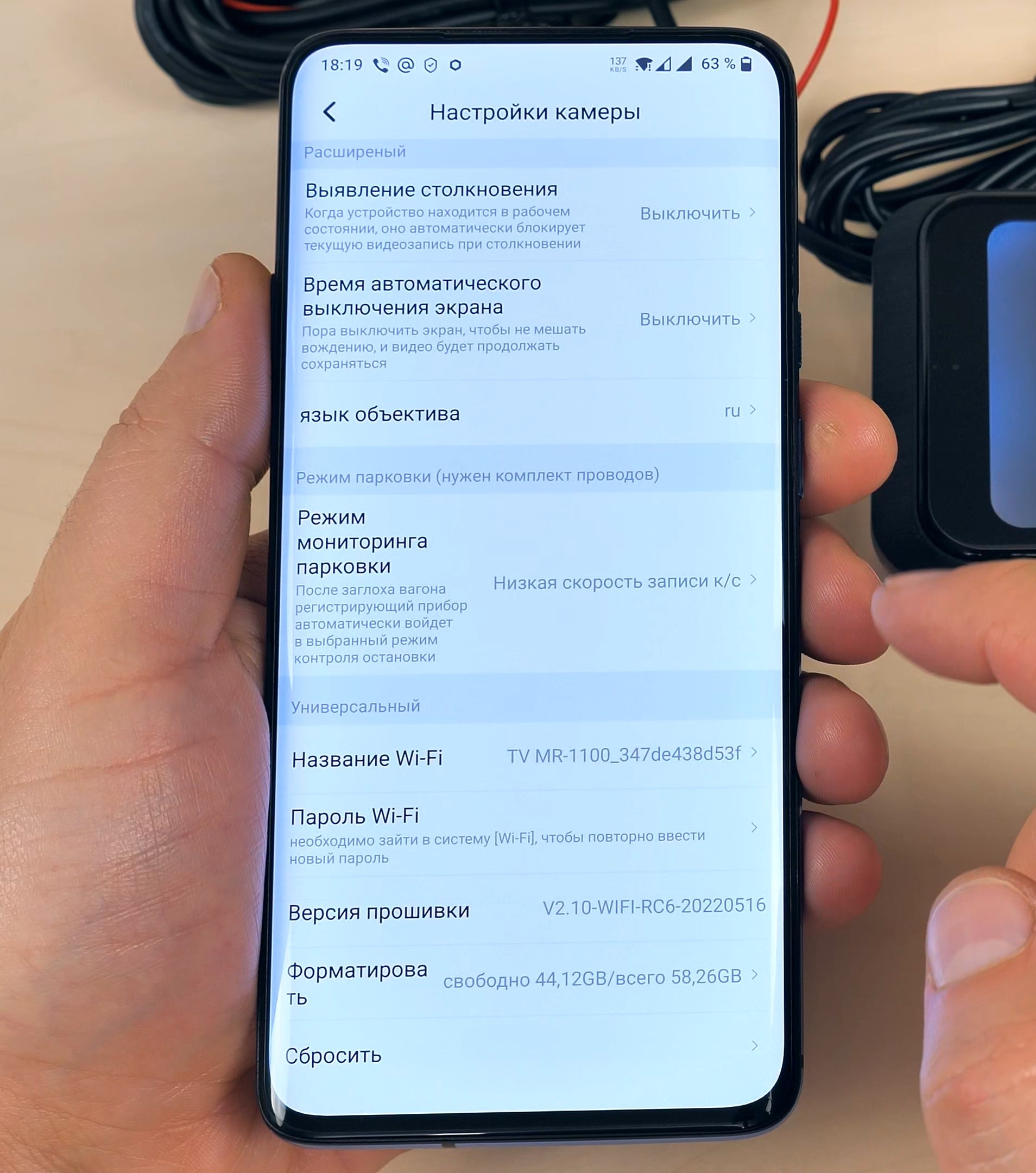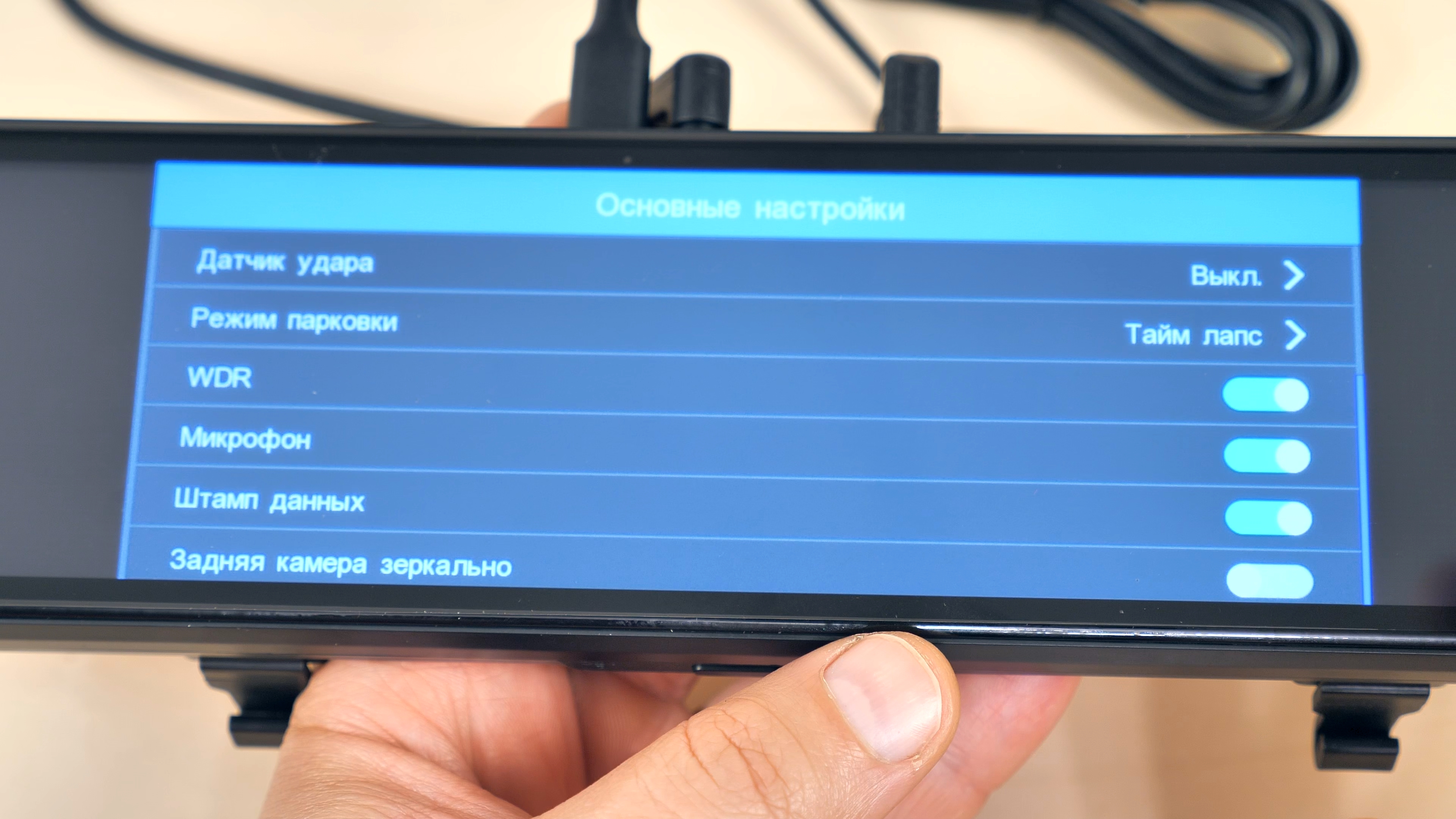 Также в настройках можно включить/выключить микрофон, отображение данных на видеозаписях, а также можно отзеркалить видеопоток с задней камеры.