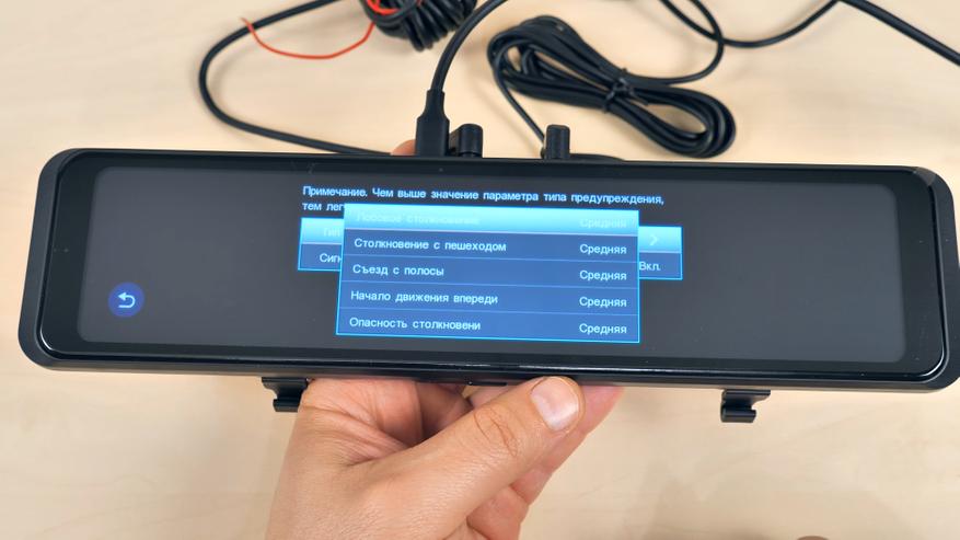 Настроек много, можно настроить работу искусственного интеллекта (ассистента): по отдельности включить/выключить предупреждение о столкновении или же мониторинга слепых зон; активировать калибровку этих систем при первоначальном их запуске, а также настроить; настроить перечень уведомлений, например, о лобовом столкновении, съезде с полосы и так далее, а также их чувствительность. Настроек много и каждый сможет настроить эту систему под себя, чтобы зеркало не предупреждало о том, что водителю не нужно, или просто не действовало на нервы.