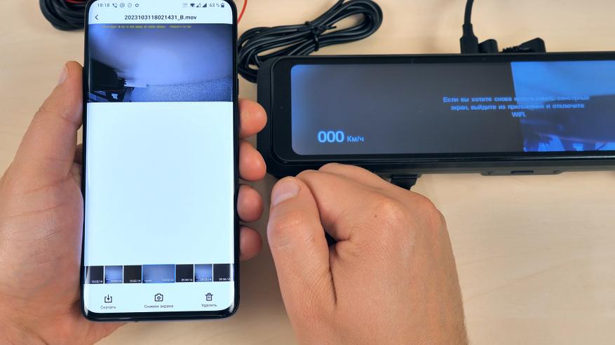 Запись на карту памяти идёт также в зеркальном виде, то есть что мы видим на экране, то же самое пишется и на карту памяти. Возможно кому-то захочется в зеркале видеть прямое изображение того, что происходит позади автомобиля, тогда можно отзеркалить картинку, и в зеркале будет выводиться истинное, не отзеркаленное изображение, но вот запись на карту памяти всё равно будет идти в зеркальном виде. Почему производитель решил сделать именно так, не понятно, возможно с обновлениями это поправят, хотя большой проблемой это не является.