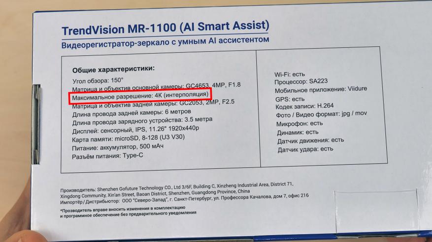 Производитель Trendvision честно указал на коробке, что разрешение 4К — это интерполяция, то есть кадр с разрешением 2К методом цифрового увеличения растянут до разрешения 4К, что на деле не даёт ровным счётом ничего, детализация от этого никак не улучшается.