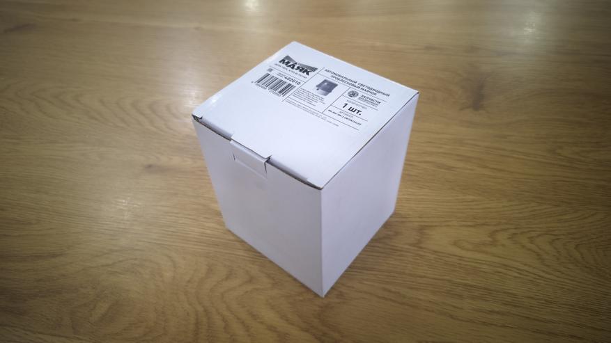 Упакован маячок в самую обычную коробку из белого картона, с одной небольшой наклейкой. Такая, что открываешь и заранее не знаешь, чего ждать. Никаких инструкций или бумажек в комплекте нет, только сам маячок.