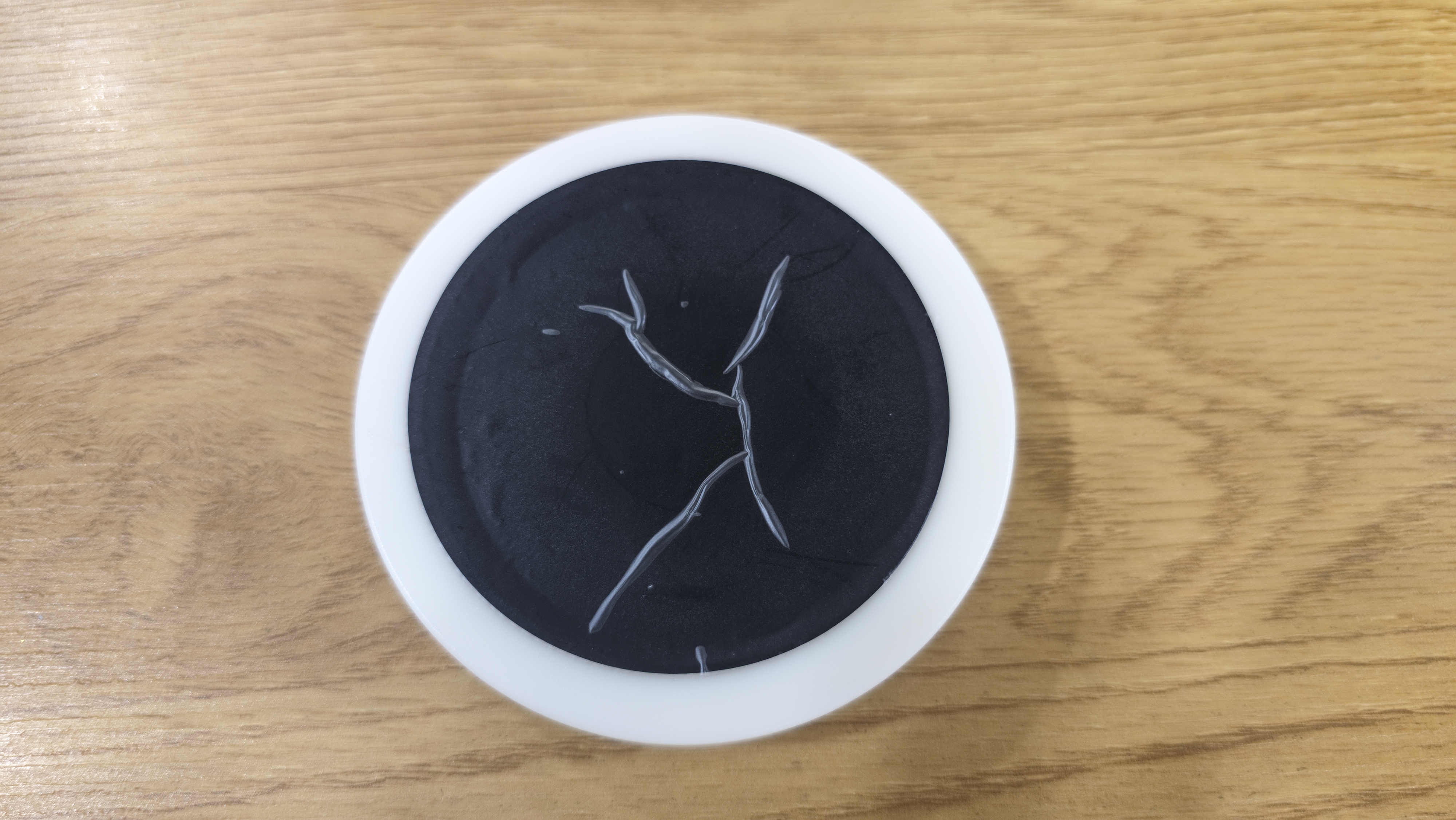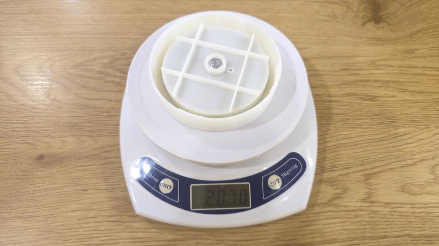 Если перевернуть маячок, снизу видно магнитное основание. Оно закрыто наклейкой черного цвета, почти по всей площади. По весу магнит чувствуется сразу: масса основания составляет 207 граммов, при этом общий вес маячка без батареек — 366.4 грамма, так что утяжелитель занимает существенную часть. Благодаря этому маячок уверенно держится на металлических поверхностях и не норовит съехать.