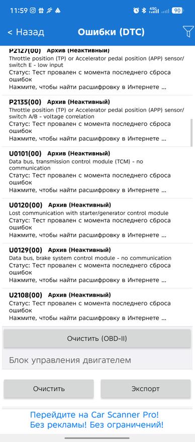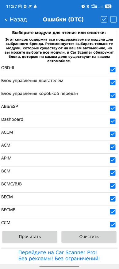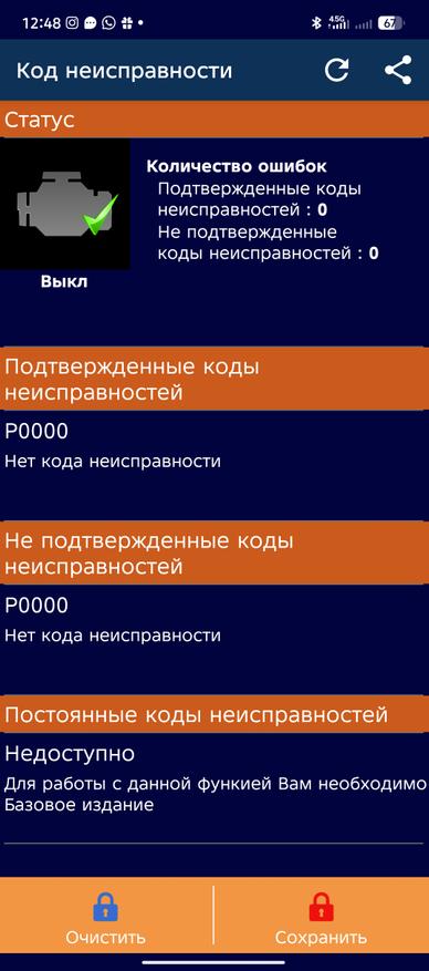 Далее Volkswagen Sharan для которого воспользуемся EOBD Facile. Данный софт мне вообще не понравился, так как изначально многие блоки не доступны в бесплатной версии приложения, плюс нельзя посмотреть активные данные об автомобиле в реальном времени (софт предлагает купить лицензию). Видя глазами ошибки на приборной панели, надеемся на их расшифровку, однако сканер Rokodil ScanX сделал всё возможное для извлечения полезной информации, а софт говорил обратное. Как итог, нельзя проверить не только ошибки, но и даже пробег автомобиля.