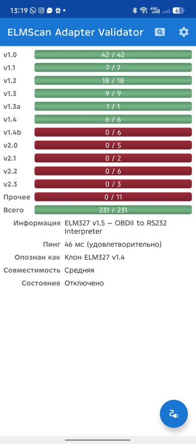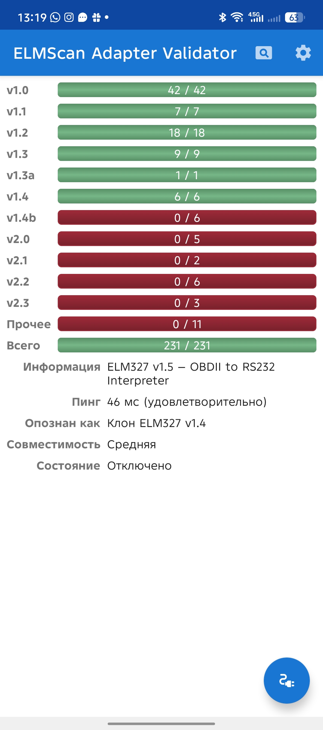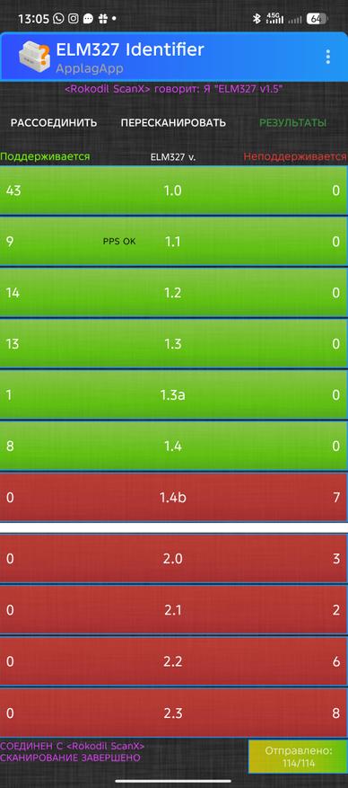 Первым делом запускаем EML327 Identifier и ELMScan Adapter Validator для проверки нужных команд, поддерживаемых сканером (заодно узнаем точную версию сканера).