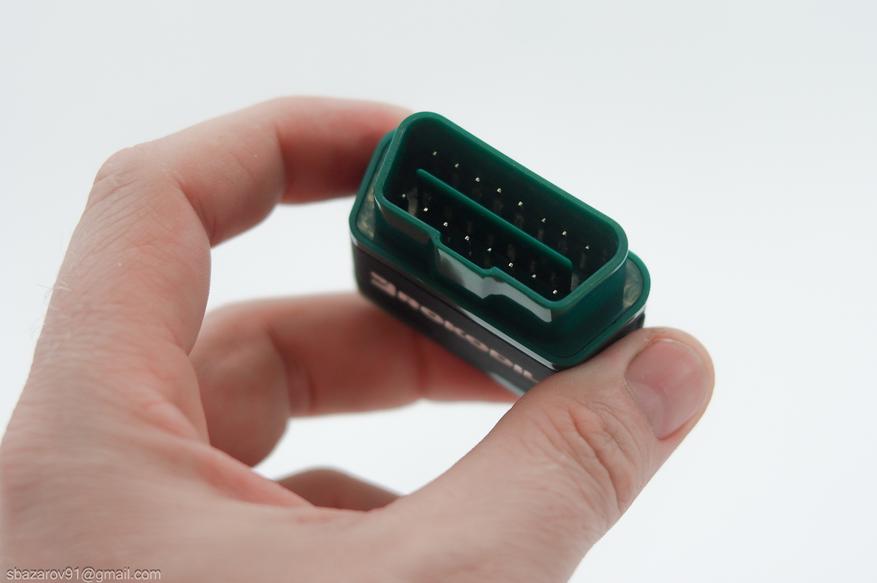 Управление сканером и сигнальные индикаторы вынесены на верхнюю панель (она приклеена к пластиковому основанию). Из-за того, что большинство OBD-разъемов расположены в труднодоступном месте, то наличие таких индикаторов под сомнением. Если же у вас автомобили, у которых OBD-разъем прячется в подлокотнике (как в моем Renault Laguna 3), то мониторинг будет более удобным.