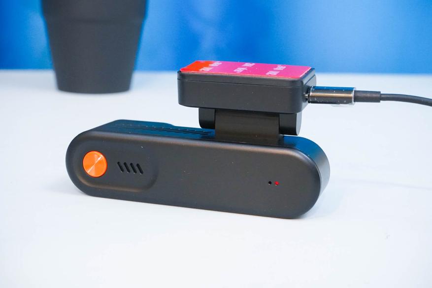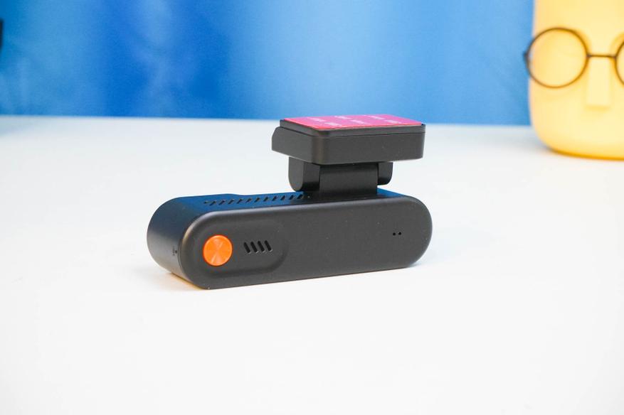 Внешний вид минималистичный — без дисплея, с компактным креплением. Отмечу кнопку на задней части корпуса, которая позволяет быстро сохранить (заблокировать от перезаписи) видео. Имеются отверстия для микрофона, а также защитная наклейка (стикер) на линзе. Не забывайте снимать этот стикер перед установкой.