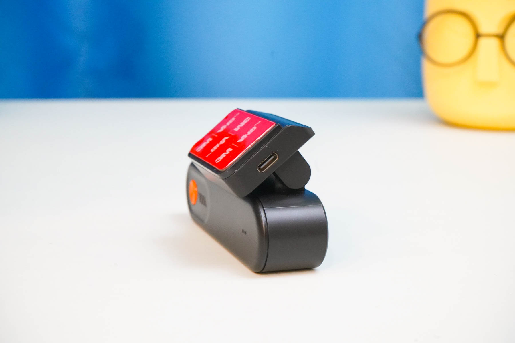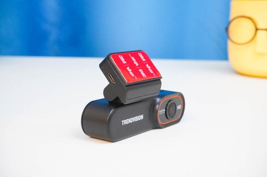 Несмотря на компактную конструкцию, поворотный кронштейн имеет три особенности. Во-первых, это возможность наклона вперед и назад таким образом, что всегда можно подобрать оптимальный угол при установке. Далее отмечу сдвижной фиксатор — видеорегистратор всегда можно снять и убрать, если он не нужен. Третий важный момент — это размещение USB-C гнезда в основании кронштейна.