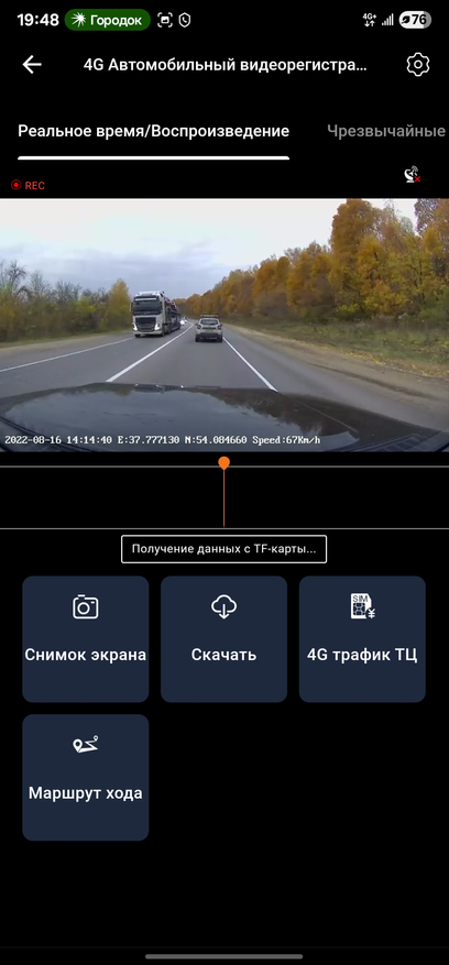 Видеорегистратор фиксирует различные события на дороге, в том числе нарушителей. Подрезали ли, или резко выехали с обочины перед вами — все сохранится и будет доступно со смартфона для скачивания и отправки, с указанием координат места съемки. Отмечу, что регистратор вполне прилично видит номера а/м на попутной обочине на скорости, а также в сумерках и при недостаточном освещении.