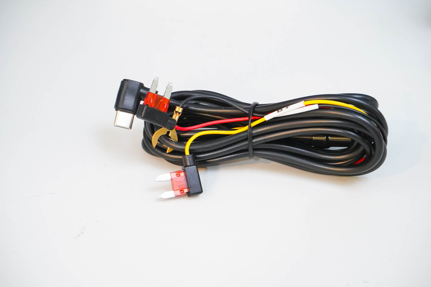 Для работы в режиме 24/7 устройство подключается к бортовой сети автомобиля через комплект проводов с предохранителями. Это позволяет запитать его напрямую от аккумулятора для непрерывной работы в парковочном режиме. Производитель в руководстве дает рекомендации по скрытой прокладке кабеля — провода можно спрятать под обшивку потолка и боковой стойки. На мой взгляд, проще будет подключить оригинальный провод к плафону верхнего света, благо необходимые предохранители там уже предусмотрены в цепи питания. Отмечу, что в цепи предусмотрено два провода с подключением к +12: непосредственно питание и сигнал активного зажигания.
