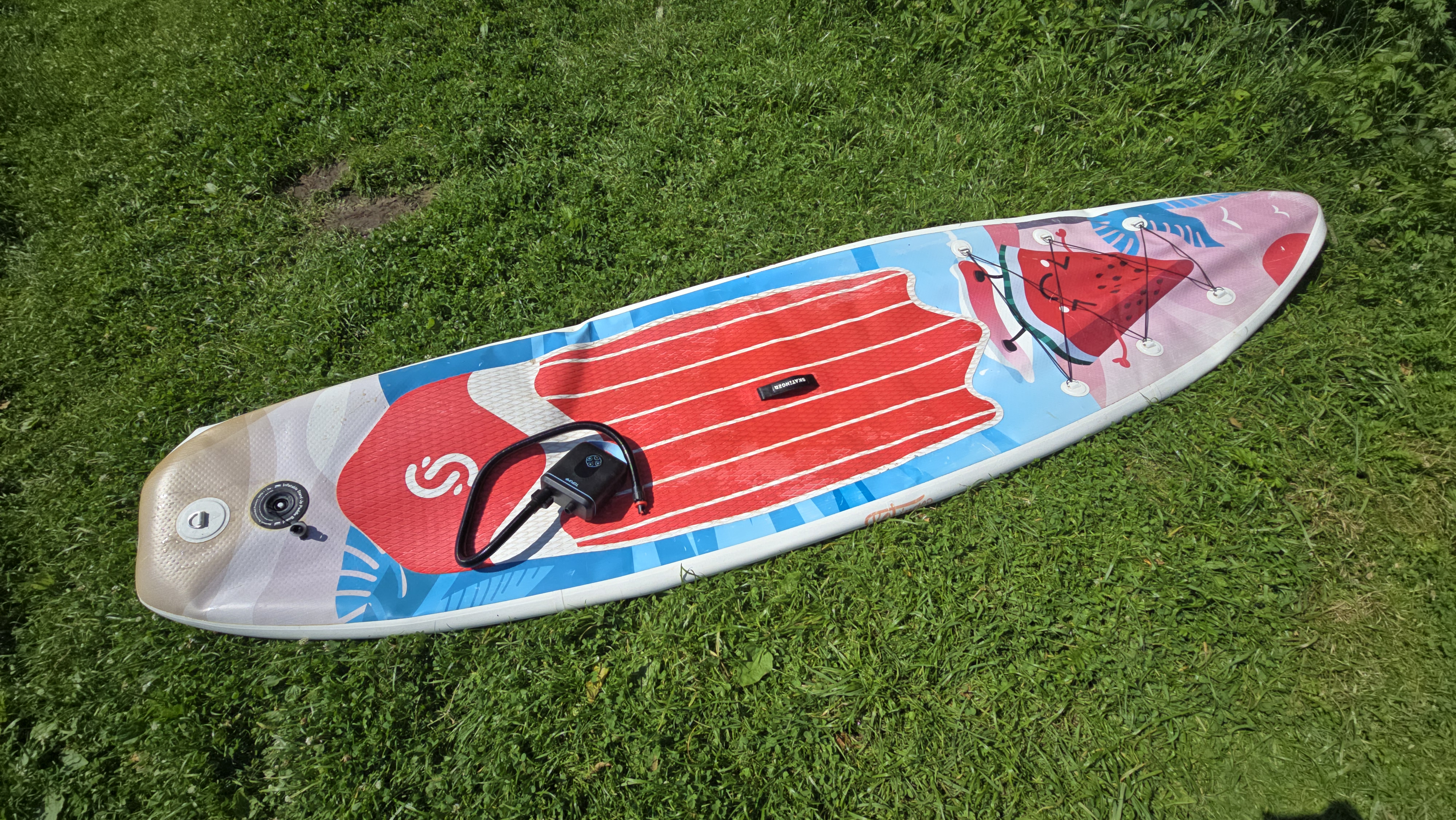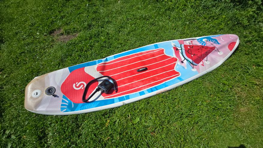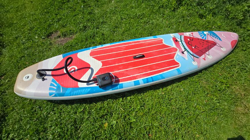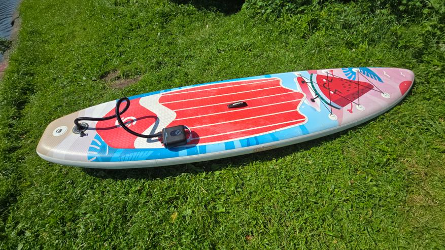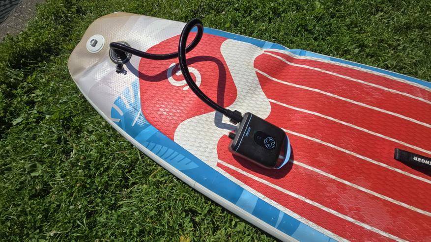 Вторая доска накачивалась примерно столько же, может, на полминуты дольше — к этому моменту уже падал уровень заряда, судя по индикатору. На саму производительность это не повлияло, скорость осталась стабильной. По времени суммарно получилось чуть меньше 20 минут чистой работы. Спустя несколько часов активного отдыха я перешел к сдуванию — поочередно спустил обе доски, подключив шланг к соответствующему порту. Тут все происходит заметно быстрее: одна доска полностью сдувается примерно за 2 минуты. Вторую — чуть быстрее, потому что часть воздуха уже успела выйти пока я занимался первой.