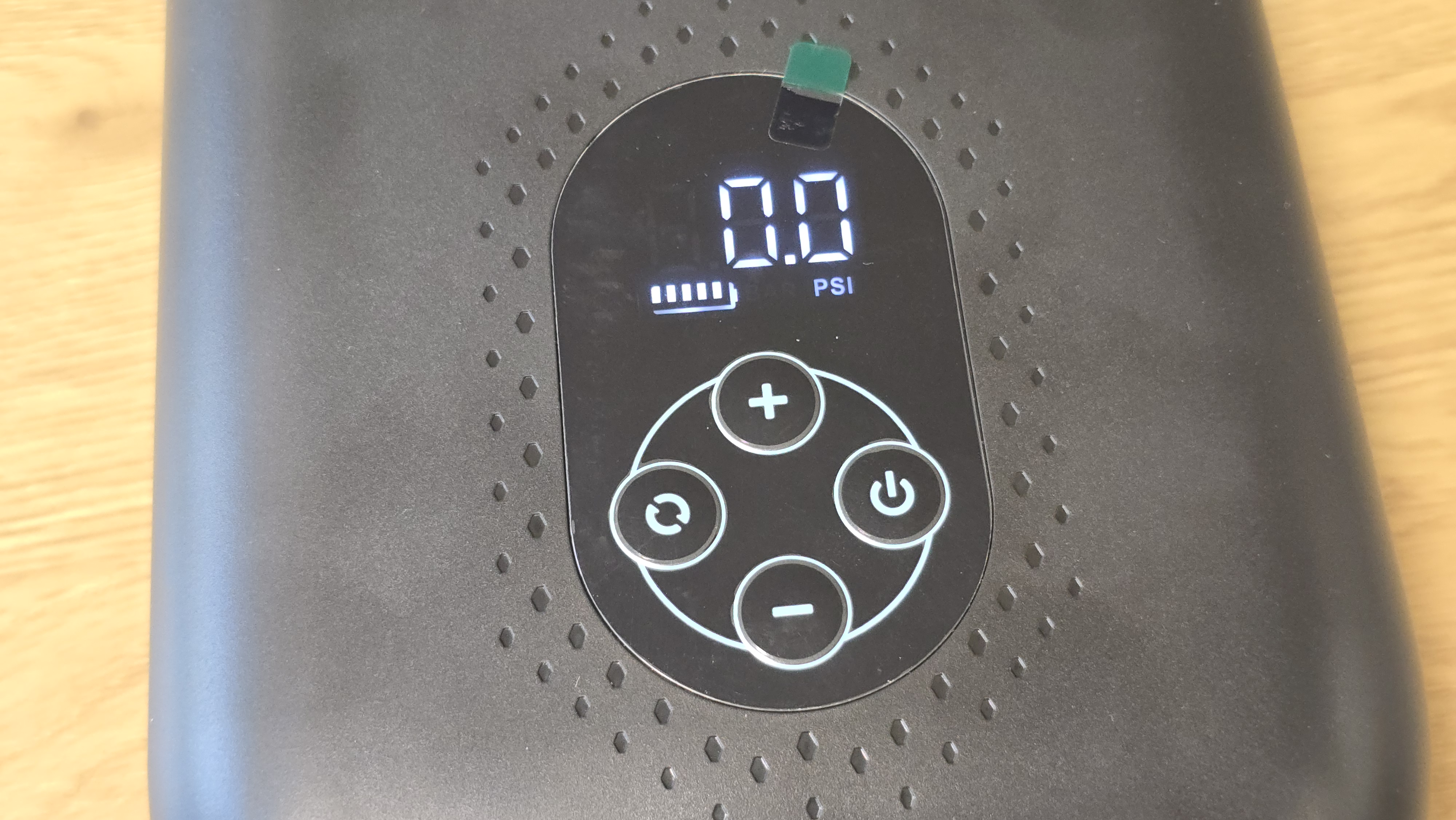 Встроенный цифровой блок управления позволяет установить необходимое значение давления в диапазоне 0.5 до 20 PSI. Есть возможность переключения между двумя единицами измерения: PSI и бар. Для этого используется отдельная кнопка, отвечающая за выбор режима. Значения регулируются шагами: на низком давлении шагом в 1 PSI, после 3 PSI (0.2 бар) — крупнее, с шагом в 5 PSI (0.05 бар). После достижения заданного значения устройство отключается автоматически, чтобы не перегнать воздух.