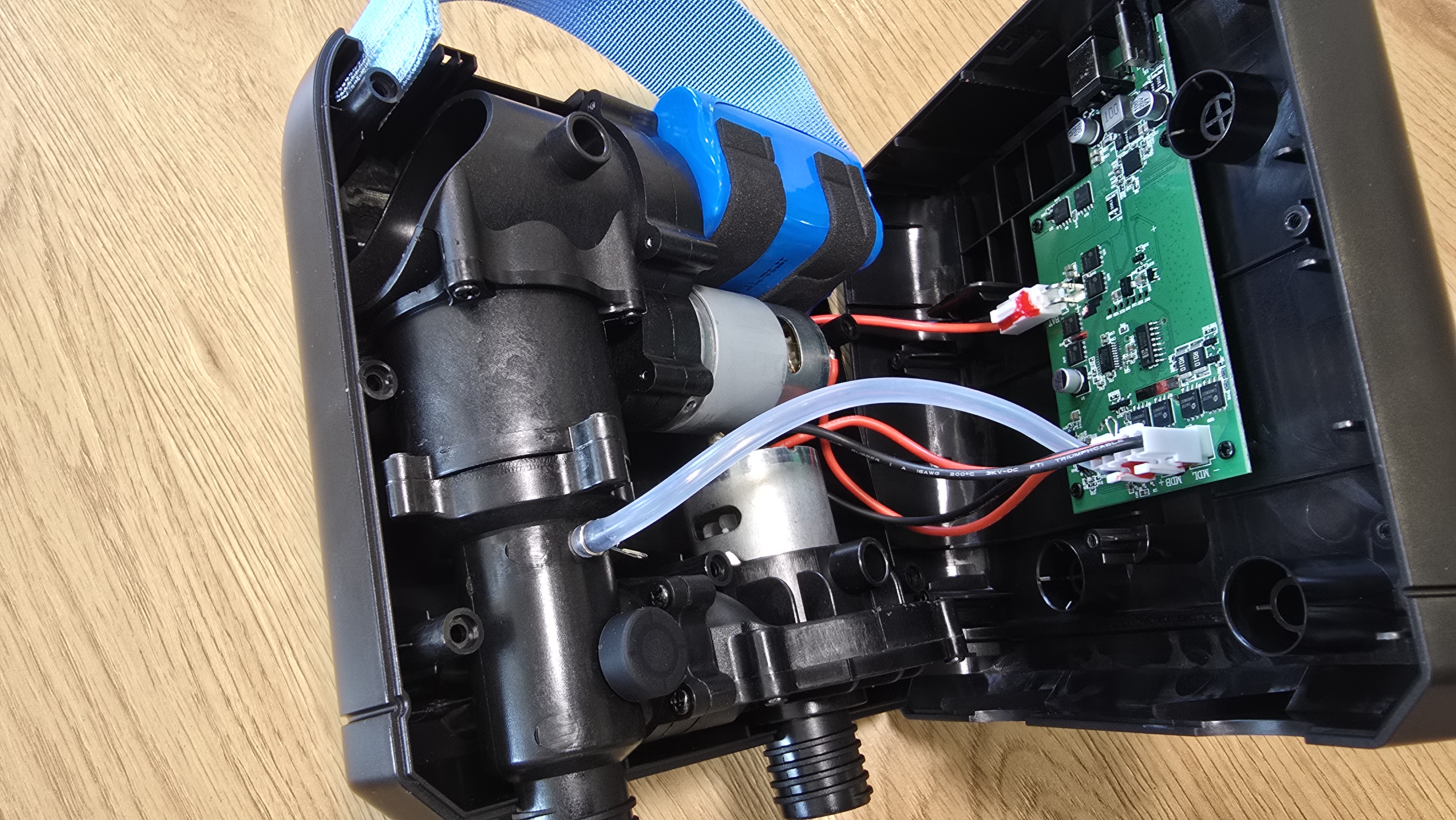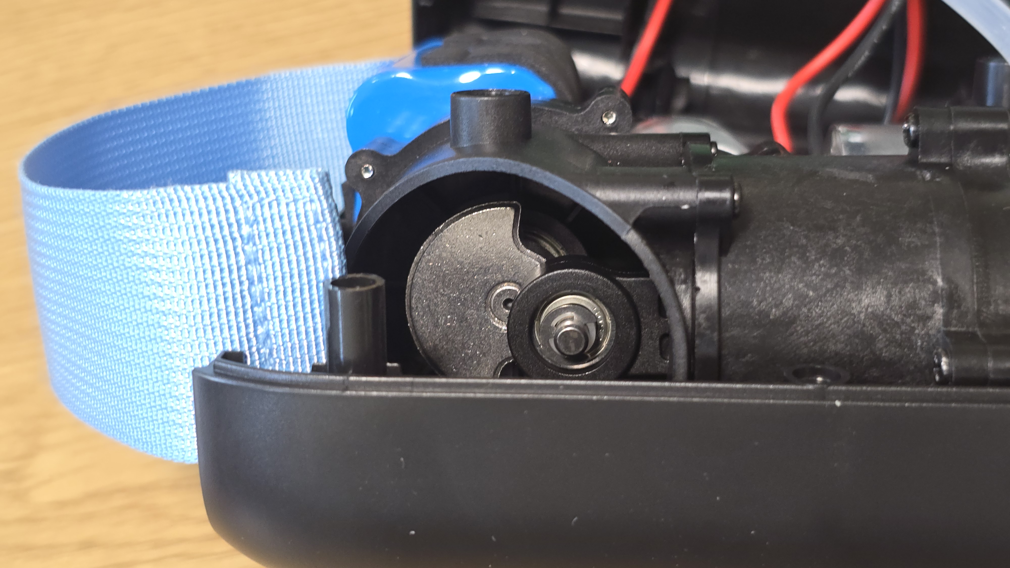 Основу компрессорного узла составляют два электродвигателя. Один — тип RS550 на 12 В, второй немного меньше. Оба подключены к двухступенчатой надувной системе: одна ступень создает поток воздуха за счет турбины, вторая отвечает за повышение давления. Это типичная схема для насосов с комбинированной производительностью.